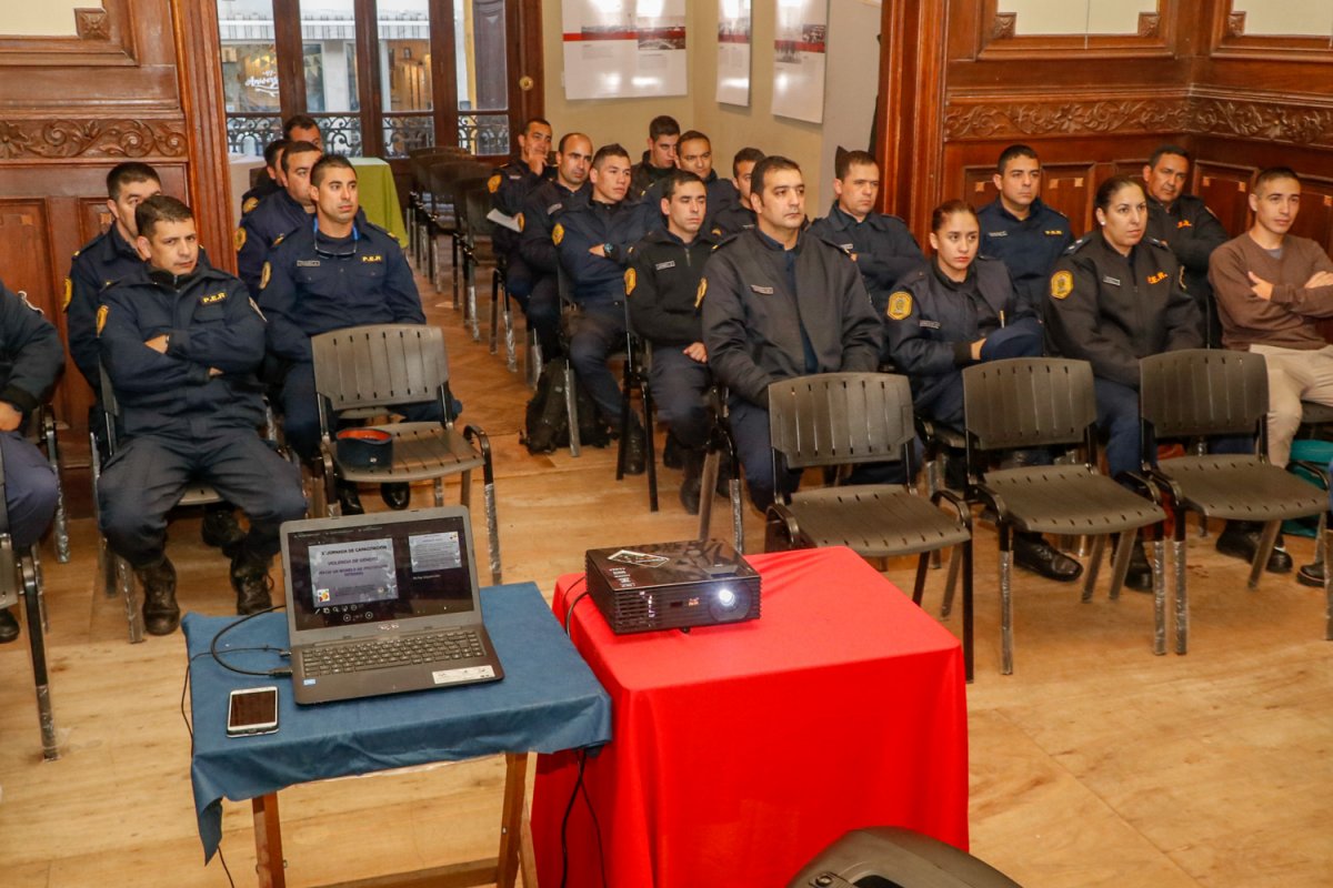 Junto al secretario de gobierno, Ignacio Farfán, la coordinadora del área de Género y Diversidad Sexual, Florencia Bugnone, llevaron adelante un nueva capacitación a personal policial.