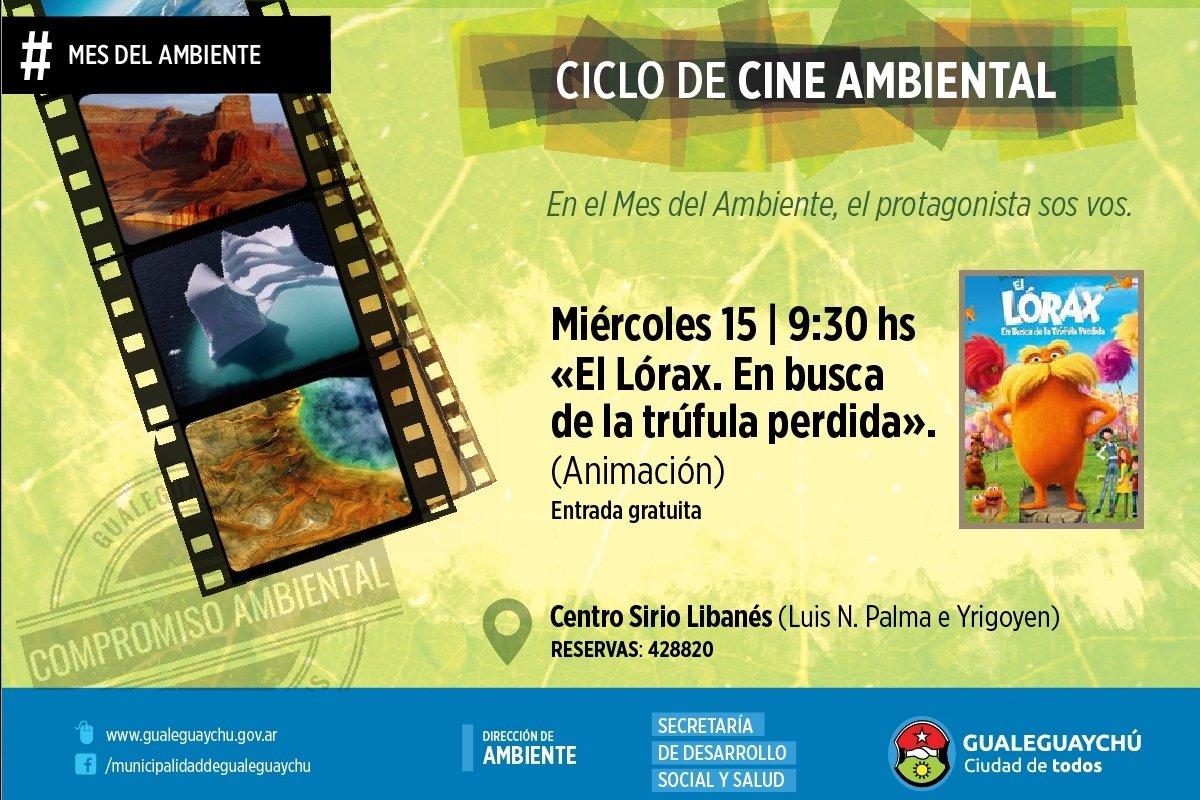 El pasado 5 de junio se celebró el Día Mundial del Ambiente y la dirección de Salud Municipal, a través del Programa de Educación Ambiental, organizó en esa oportunidad entre otras actividades, un ciclo de cine ambiental, el cual continúa en estos días. Cabe destacar que el mismo está destinado a toda la comunidad educativa en sus distintos niveles y al público en general.