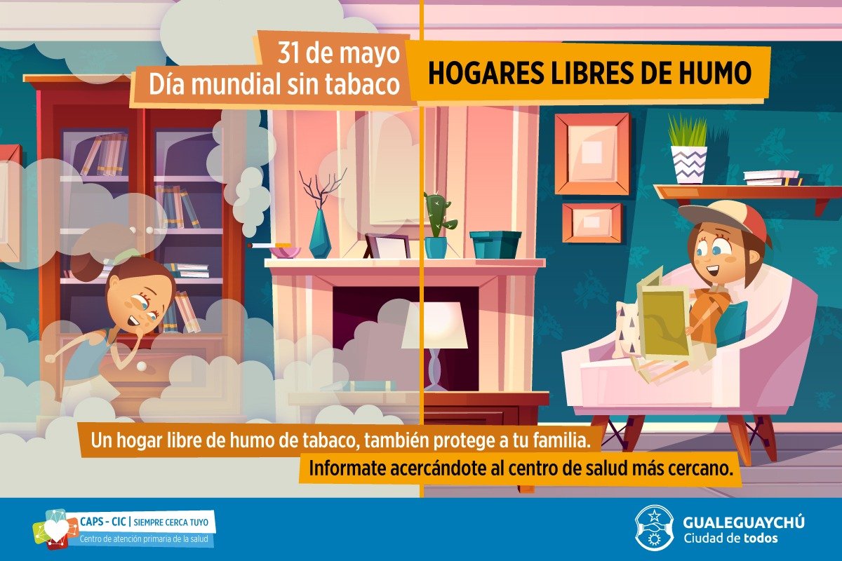 Para este 31 de Mayo el Área de promoción y equidad para la salud junto al Programa Gualeguaychú 100% libre de humo de tabaco focaliza la sensibilización en los hogares, la propuesta continuará a lo largo del año con un trabajo articulado con los Centros de Salud y las familias, como así también con las escuelas y con difusión de piezas comunicacionales elaboradas al respecto.
