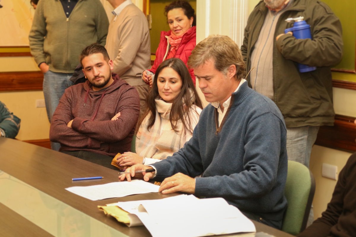En el salón de la Memoria el intendente Piaggio junto a vecinos de la ciudad firmó el contrato para realizar la pavimentación de 13 cuadras. La accesibilidad a los barrios, el eje.