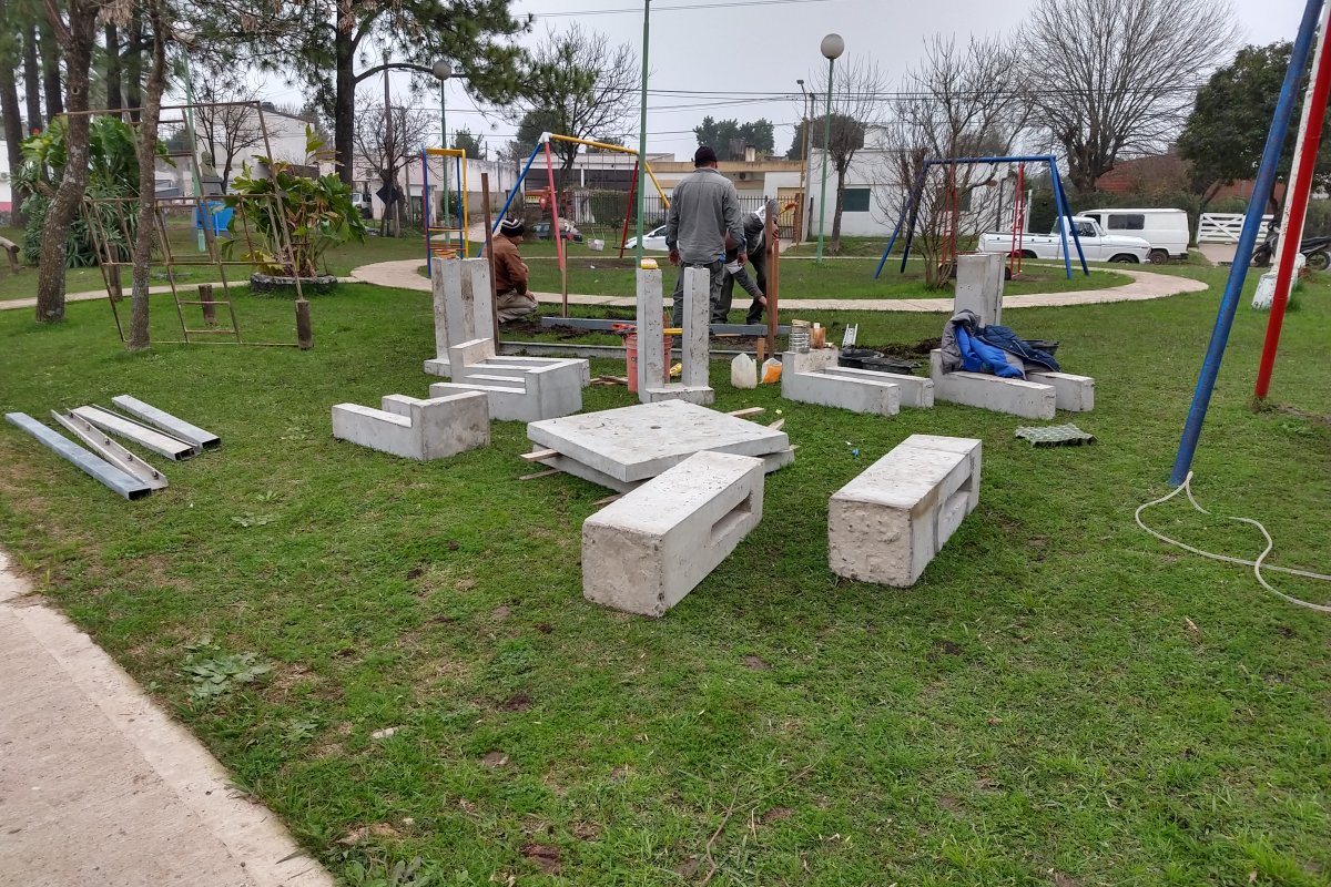 “En la actualidad se fabricaron e instalaron 38 mesas completas compuestas de 4 bancos, un pie de mesa, una tapa de mesa y un piso de hormigón armado, totalizando un total de 285 piezas de hormigón armado”, detalló el director de Espacios Públicos Alejandro Beatrice quien además señaló que “los trabajos se llevan adelante con el trabajo en equipo, mano de obra municipal y cooperativa”.