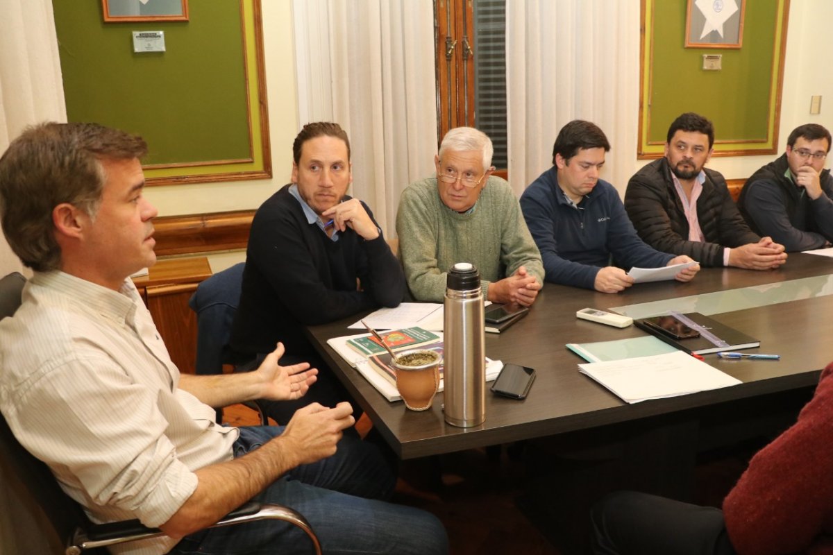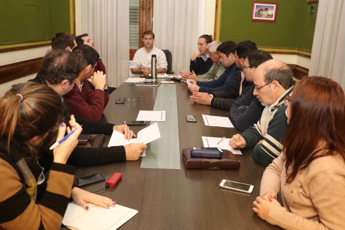 En el salón de la Memoria de la Municipalidad se realizó una reunión encabezada por el intendente Dr. Esteban Martín Piaggio junto al viceintendente Jorge Maradey, secretarios y concejales de diferentes áreas de gobierno para determinar acciones a seguir ante la crisis económica provocada por las medidas llevadas adelante por el gobierno nacional.