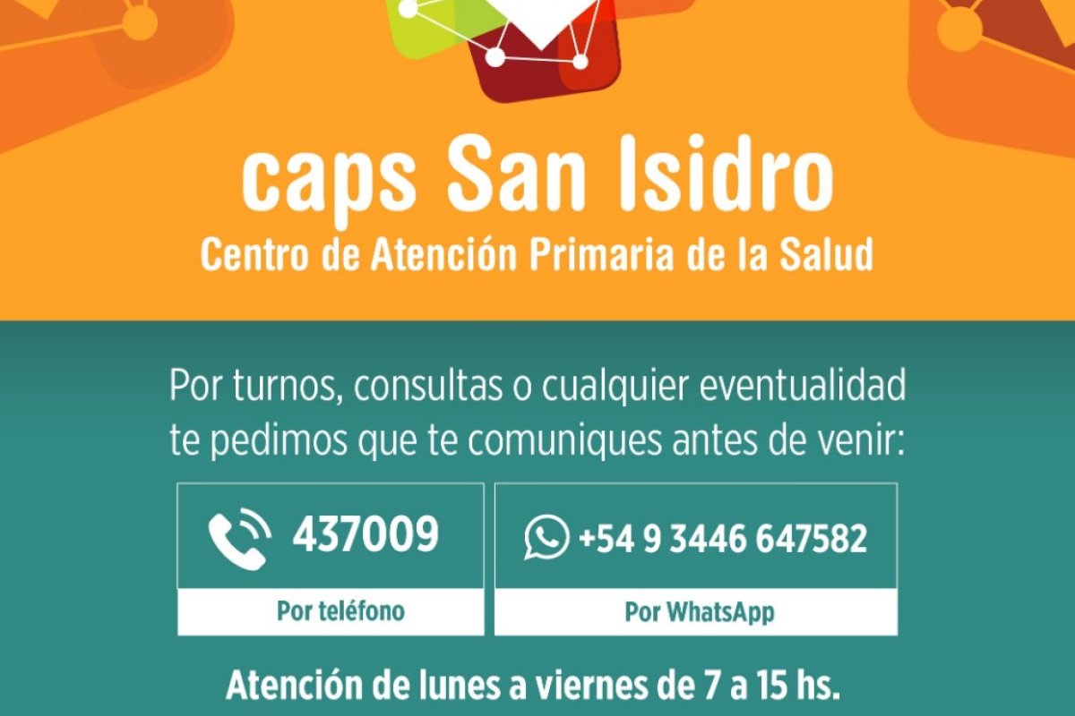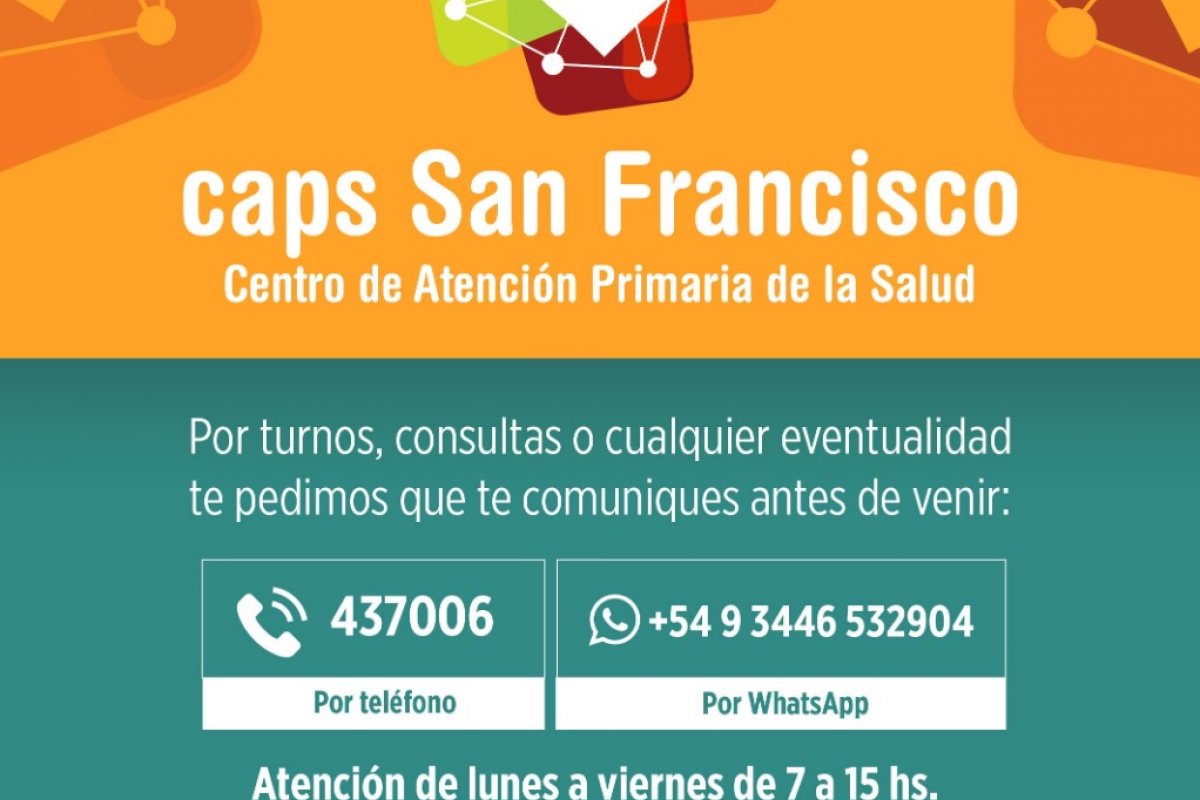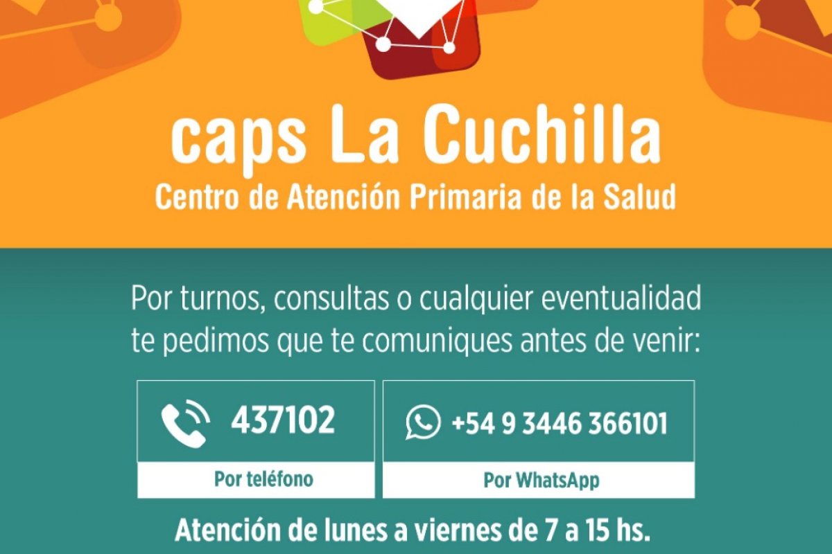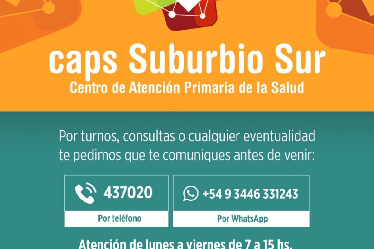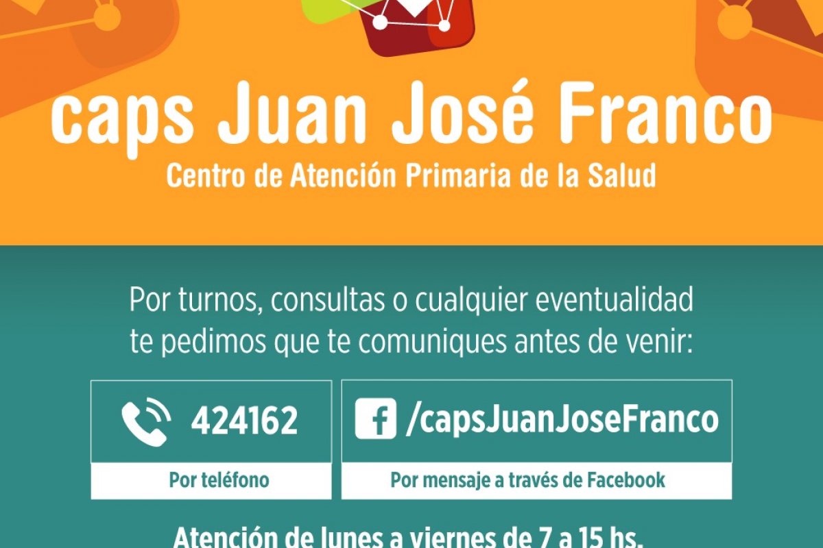 Recordamos que se ha dispuesto una necesaria reorganización para la atención de la salud en los distintos establecimientos sanitarios en pos de brindar una atención de Salud de calidad cuidando y optimizando los recursos existentes. Por lo que es necesario comunicarse telefónicamente con anticipación para consultar y solicitar turno para vacunación al CAPS más cercano de los siguientes: CAPS San Francisco; CAPS La Cuchilla; CAPS San Isidro; CIC Néstor Kirchner; CIC Médanos; CAPS suburbio Sur; CAPS Juan Baggio; CAPS Munilla y CAPS Patico Daneri.