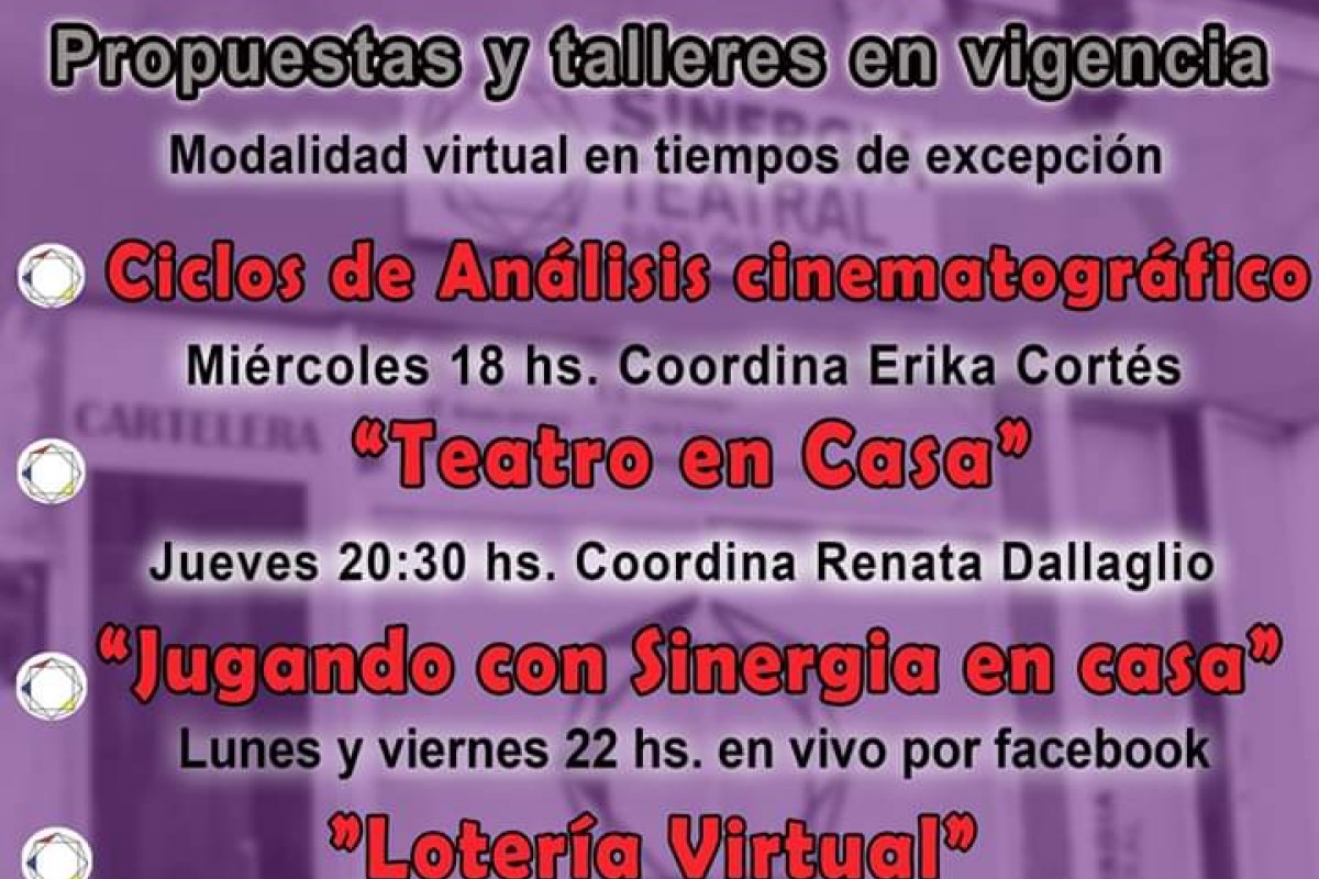 ▪️ "Jugando con Sinergia en Casa" Coordinan Vale Bassini y Claudio Perez (Lunes y viernes 22 hs. en vivo por facebook "Sinergia Teatral"
