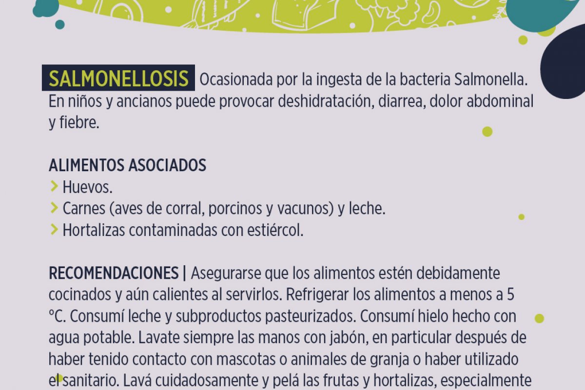 En el marco del programa Cocina Responsable “Elaboración y manipulación cuidada de alimentos” que lleva adelante el área de Bromatología Municipal, el cual tiene dentro de sus objetivos brindar información y concientizar a los consumidores sobre su rol fundamental en la prevención de las Enfermedades Transmitidas por Alimentos (ETA´s), brinda información sobre la Salmonelosis.