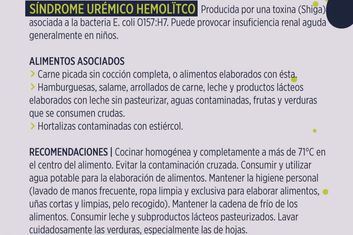 En el marco del Programa Cocina Responsable “Elaboración y manipulación cuidada de alimentos” que lleva adelante el área de Bromatología Municipal, el cual tiene dentro de sus objetivos brindar información y concientizar a los consumidores sobre su rol fundamental en la prevención de las Enfermedades Transmitidas por Alimentos (ETA´s), brinda información sobre la Síndrome Urémico Hemolítico o SUH.