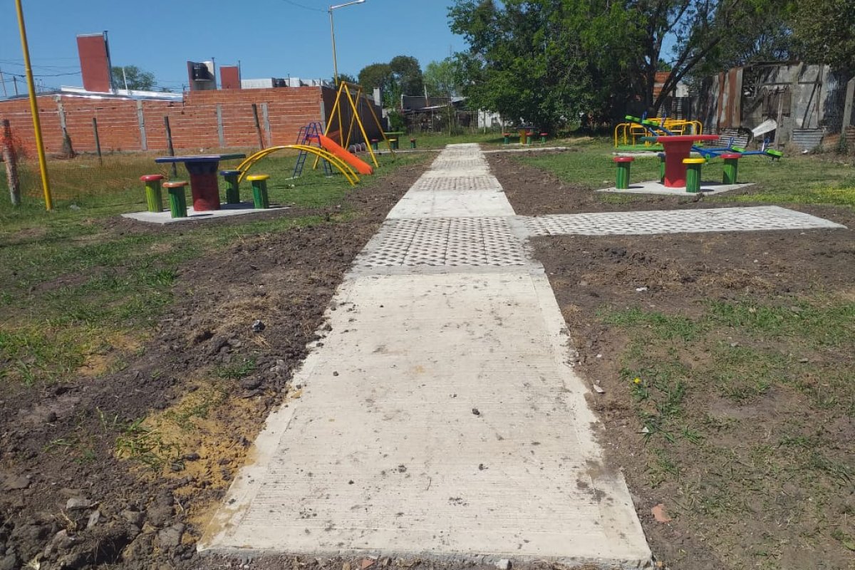 En el marco del trabajo intenso que este gobierno municipal realiza sobre los espacios públicos, actualmente lleva adelante mejoras en la plaza ubicada en calle Los Pinos, entre Alsina y Rawson, donde se hicieron veredas, se instalaron baldosas de pasto fabricadas en FAMUCO, se colocaron juegos de recreación para niños y mesas y bancos.