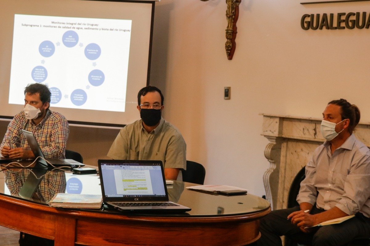 Los miembros del comité científico de la delegación Argentina de CARU, Emilio Menvielle y Ricardo Juárez fueron recibidos por el secretario de Ambiente, Salud y Desarrollo Social Martin Roberto Piaggio la concejala Susana Villamonte, los integrantes de la Asamblea Ciudadana Ambiental Gualeguaychú, Javier Pretto y Carlos Goldaracena, y el equipo directivo de Ambiente.