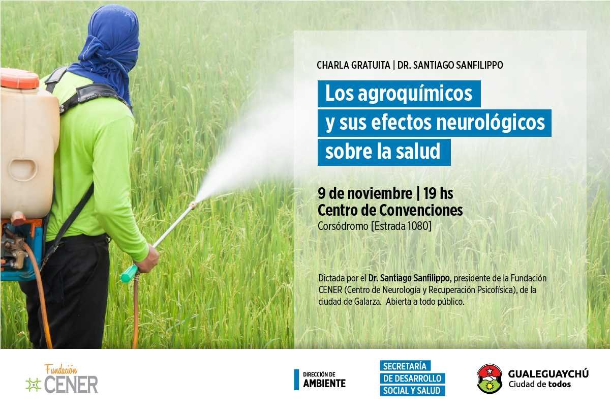 El 9 de noviembre a las 19 hs en el Centro de Convenciones Municipal la dirección de Ambiente y la Fundación CENER ofrecerán una charla sobre “Agroquímicos y sus efectos Neurológicos sobre la salud”.