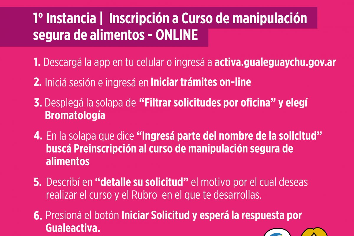 La capacitación se sigue desarrollando de manera virtual en el marco de la Pandemia y los usuarios se inscriben al Curso de “Manipulación Segura de Alimentos” a través de Gualeactiva. Está destinado para aquellos manipuladores que requieran tramitar el carnet por primera vez.