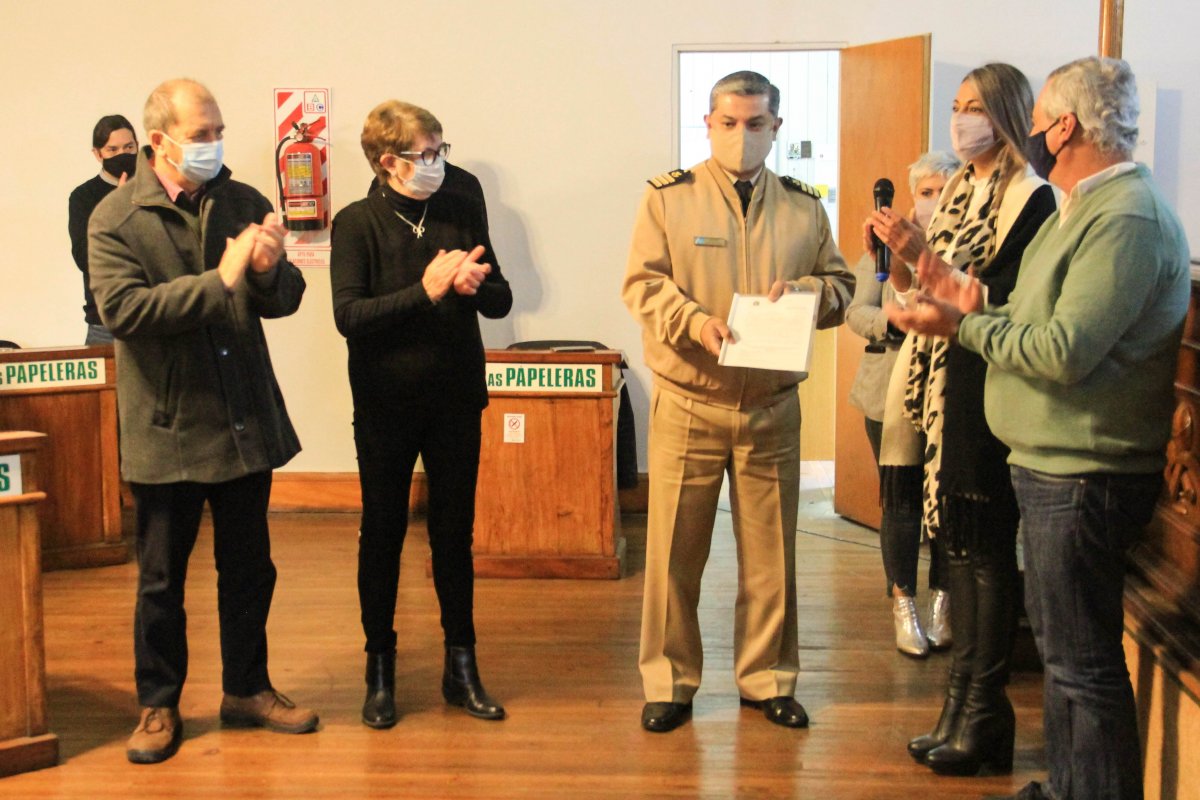 Seguidamente, el jefe de la Prefectura Gualeguaychú, Raúl Alegre, recibió la declaración de interés municipal del aniversario de los 200 años de la fuerza en la ciudad.