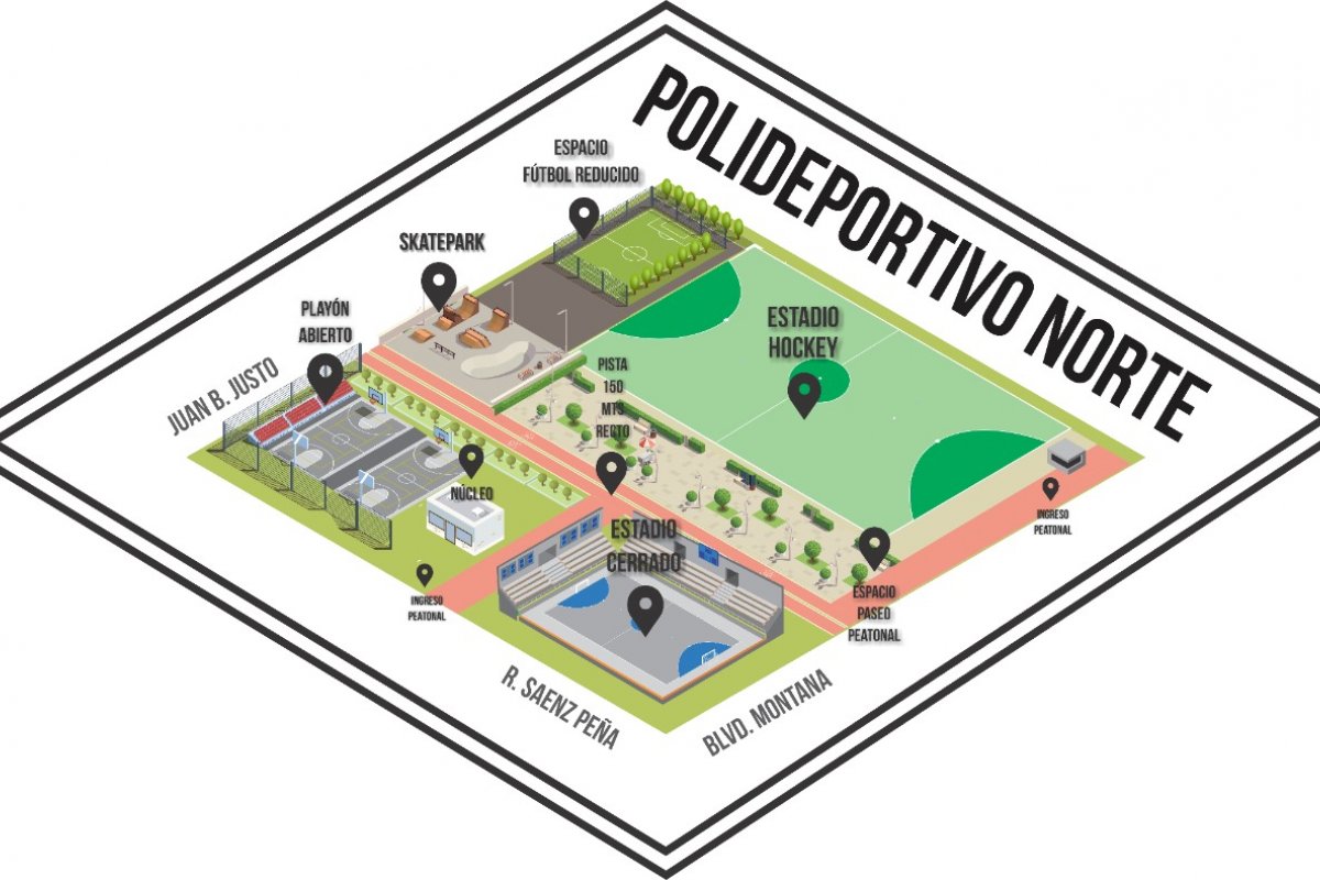 La cancha de hockey tendrá su lugar sobre calle Primero de Mayo entre Bvard Montana y Juan B Justo, en donde se construye el nuevo Polideportivo del Suburbio Norte.