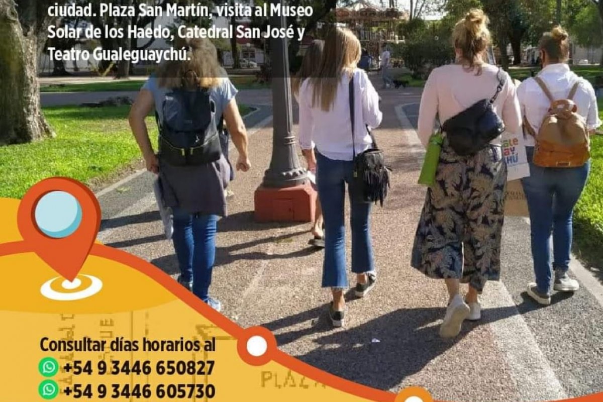 El recorrido consiste en visitar los diferentes sitios históricos del centro de nuestra ciudad como es la Plaza San Martín, el Teatro Gualeguaychú, la Catedral San José y el Museo Casa de Haedo. La duración es de una hora y la actividad es totalmente gratuita.