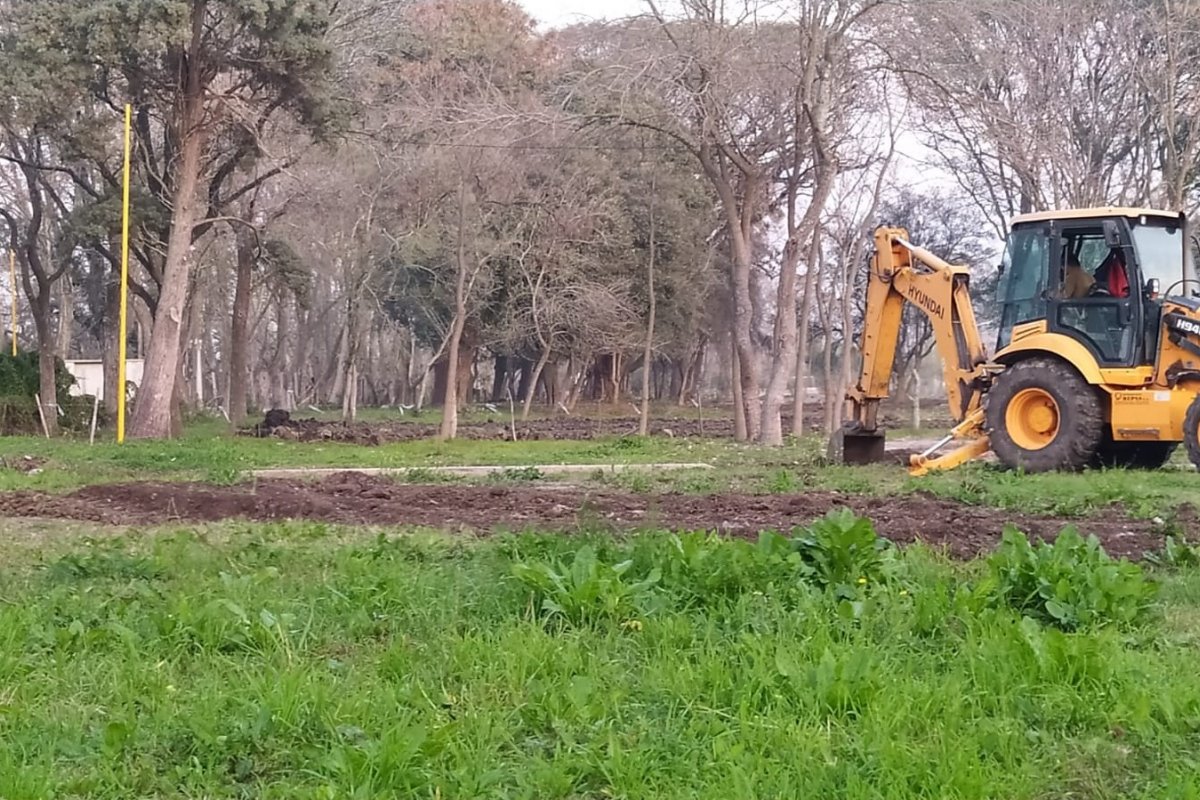 Asimismo, Beatrice señaló que “se trabaja en el frente del parque del frigorífico sobre calle Güemes, rellenando y nivelando el lugar donde más adelante se ubicará el sector de canchas de fútbol, también se avanza con el cerramiento, con alambrado olímpico” y agregó “corte de césped, desmalezado, poda de mejoramiento de árboles muy bajos son otros de los trabajos que estamos realizando desde la dirección”.