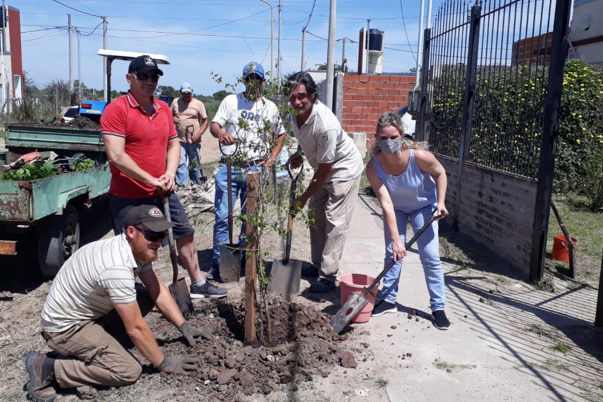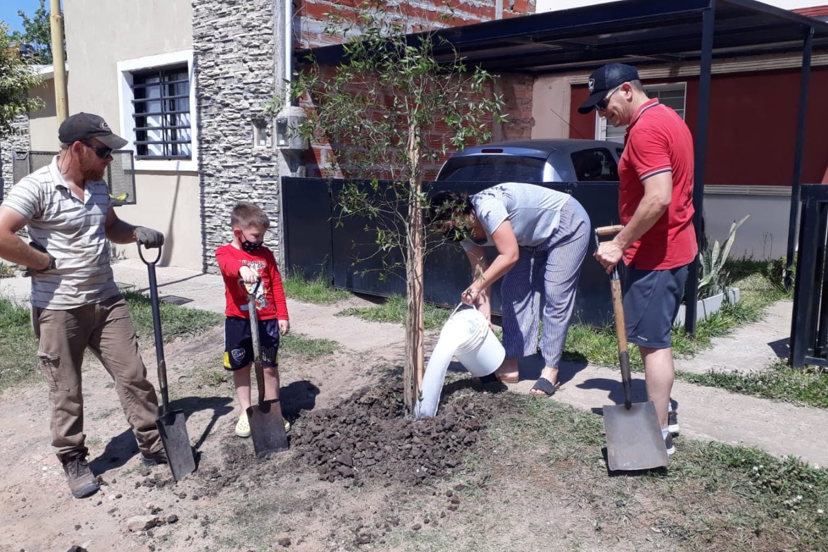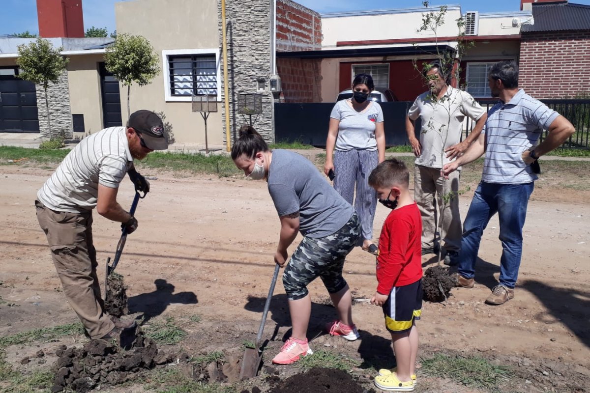 Las direcciones de Espacios Públicos y Ambiente plantaron 11 árboles junto a los vecinos del Barrio IAPV 56 viviendas.
