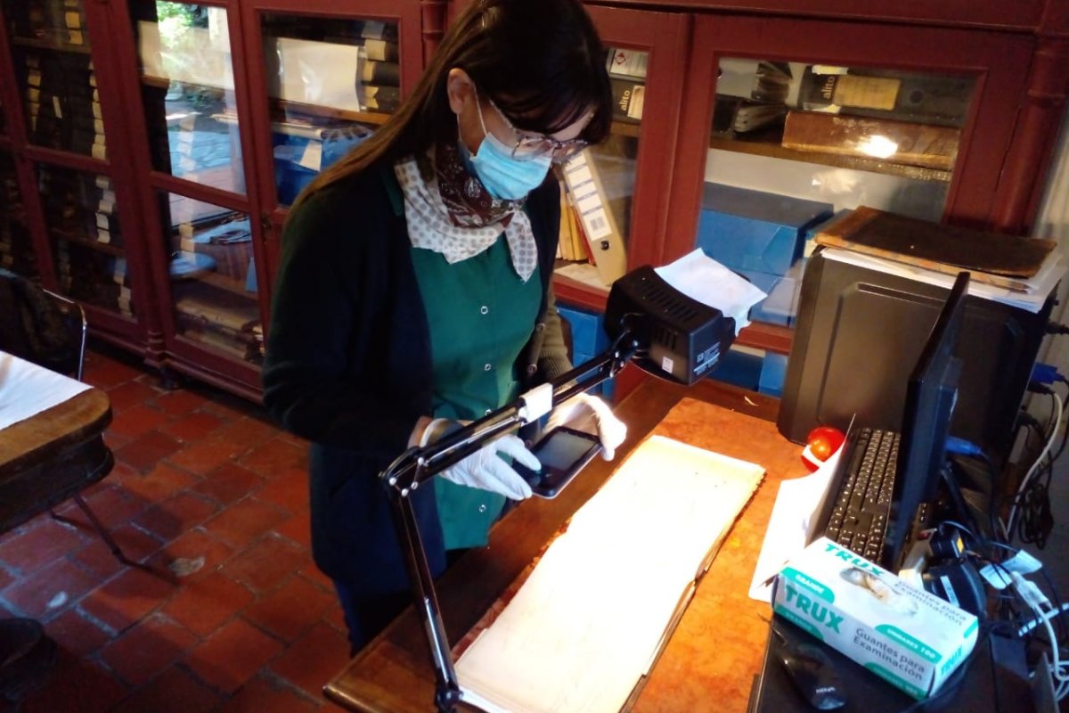 “En muchos casos, los documentos antiguos y patrimoniales, deben recibir algún tratamiento de conservación previo a su digitalización. Esto ocurre cuando los documentos presentan distintos tipos de deterioros que deben ser atendidos previamente no solo con el objetivo de lograr una mejor imagen en su digitalización, sino también con el fin de preservar el documento a nivel físico, y de proteger la salud de quien manipula esos documentos en el caso de que éstos presenten algún tipo de deterioro biológico, como hongos, por ejemplo”, manifiesta la Lic. en Conservación y Restauración María del Pilar Piana, encargada de dicha tarea.