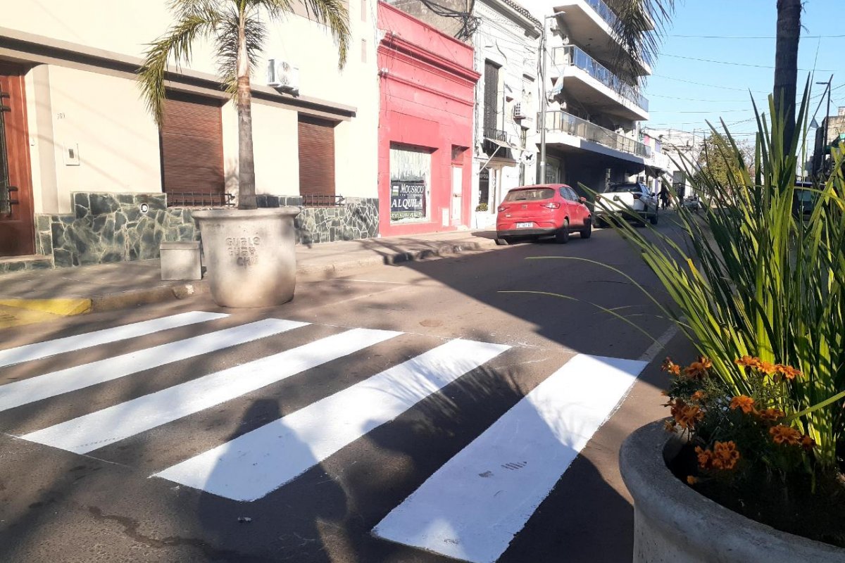 La secretaría de Obras y Servicios Públicos mejora la traza vial en el casco céntrico de la ciudad, y se realizan tareas de pintura en sendas peatonales