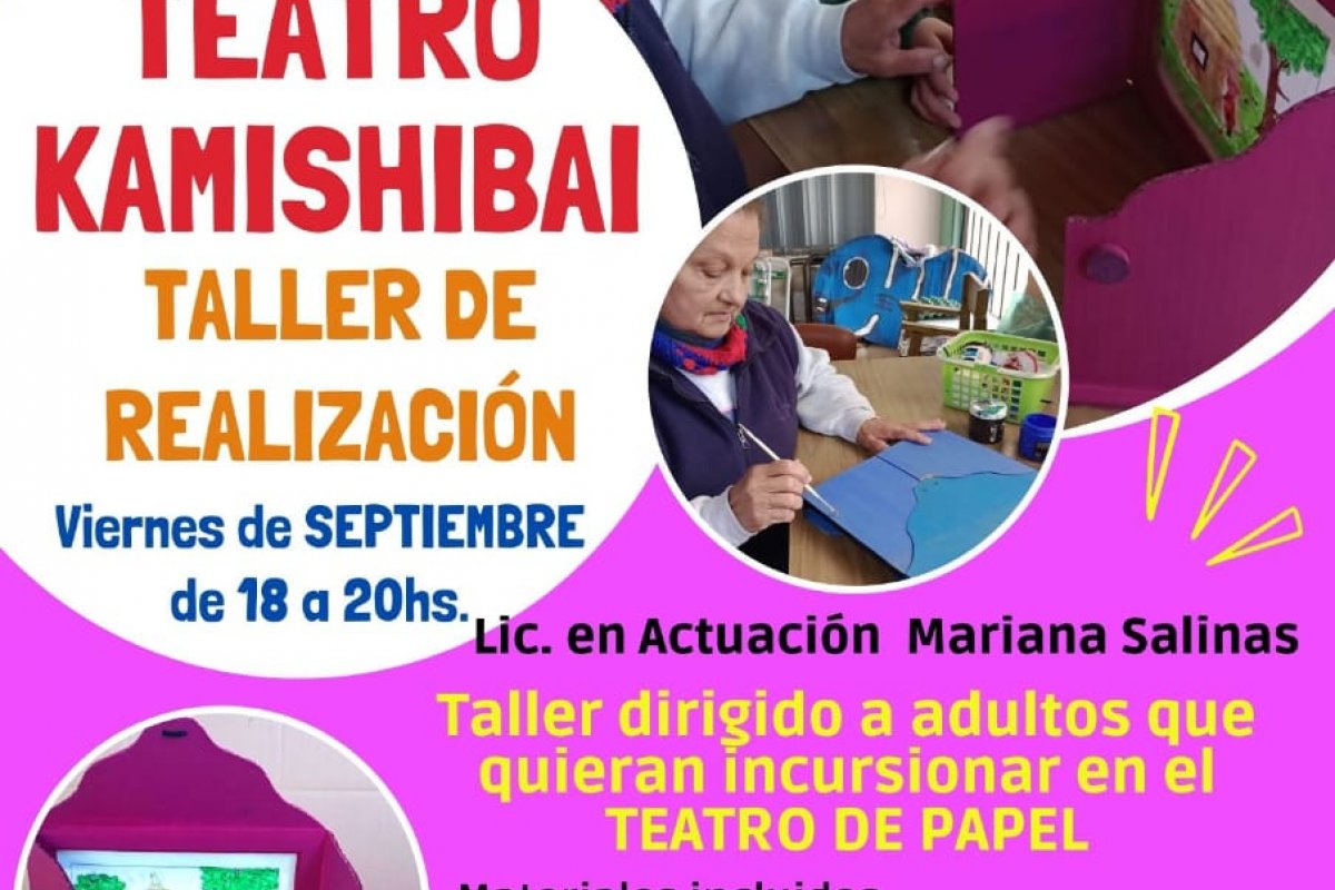 KAMISHIBAI es de origen japonés y significa Teatro de Papel. La narración oral y el arte gráfico se unen en este pequeño teatrillo. El narrador cuenta una historia a través de las láminas dibujadas que va deslizando y exponiendo en el teatrillo "butai". El taller está dirigido a todos los adultos que quieran desarrollar el uso expresivo del teatro kamishibai, y también quieran aprender a realizar una versión del teatrillo butai con materiales descartables y accesibles, además de la confección de las láminas para contar una historia. Cada participante al terminar el taller va a tener su propio kit kamishibai inicial para poder hacer las primeras experiencias en el arte de contar cuentos.
