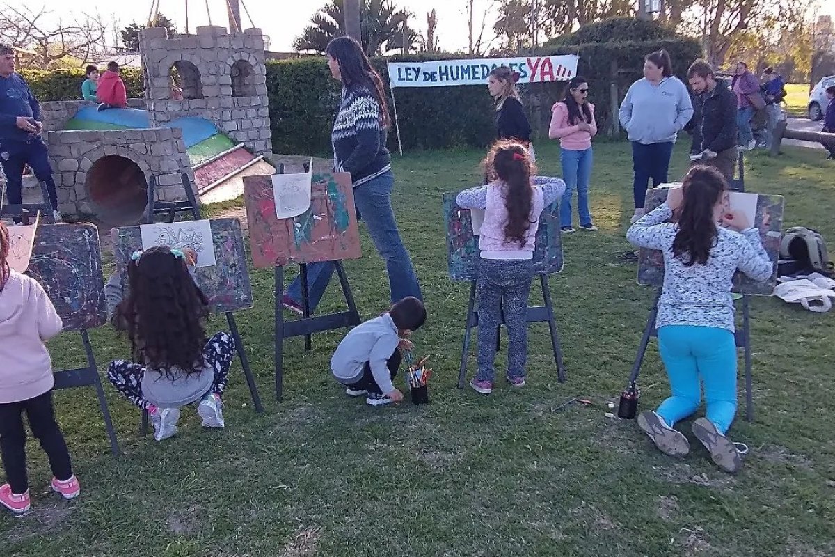 El lugar elegido para las actividades previstas en nuestra ciudad fue la plaza de Los Niños, donde se desarrollaron juegos, volanteada con información sobre la situación actual y el estado de emergencia en que se encuentran los humedales sobre todo a raíz de los incendios generados por las practicas del sistema productivo actual.