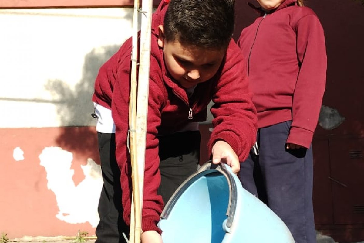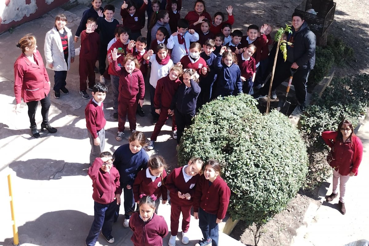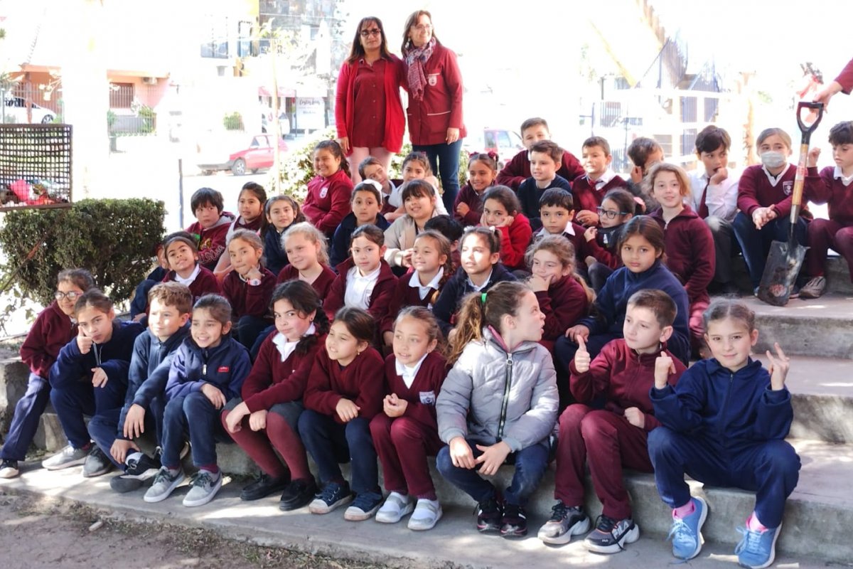 La Escuela N° 125 Sagrado Corazón plantó un árbol nativo en el frente del establecimiento, luego de la visita al Vivero Municipal