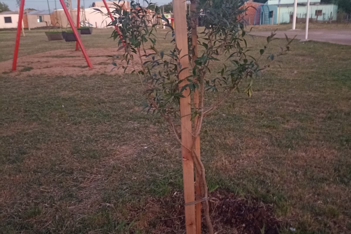 El viernes 11 de noviembre la Municipalidad llevó a cabo la plantación de 20 árboles en la renovada plaza del barrio Médanos.