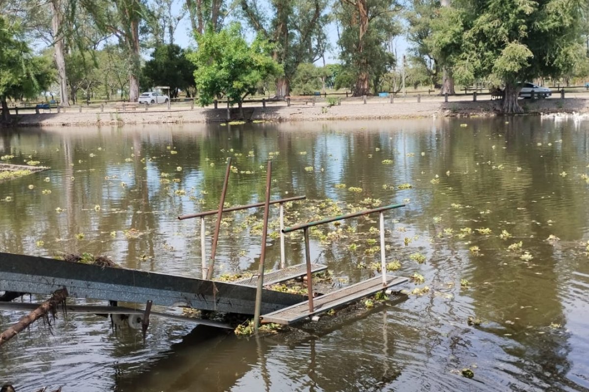 Desde hace dos semanas la Dirección de Espacios públicos se encuentra realizando tareas de extracción del exceso de repollitos de agua en la Laguna del Parque con la nueva maquinaria