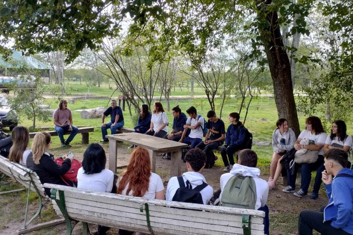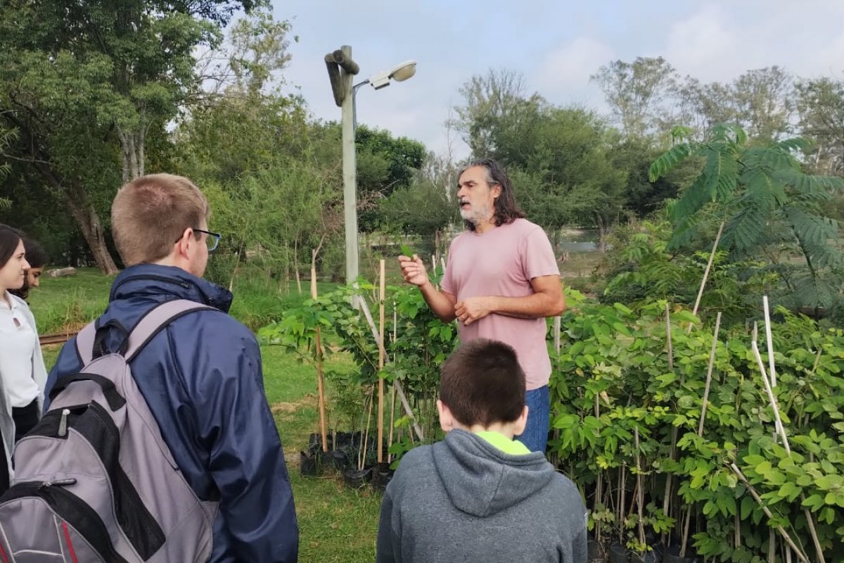 Primeramente, el arquitecto Gustavo del Valle, del equipo municipal del Vivero de Árboles Nativos de la dirección de Espacios Públicos, recibió al grupo de estudiantes brindándoles una charla explicativa en el sector con bancos bajo los árboles.