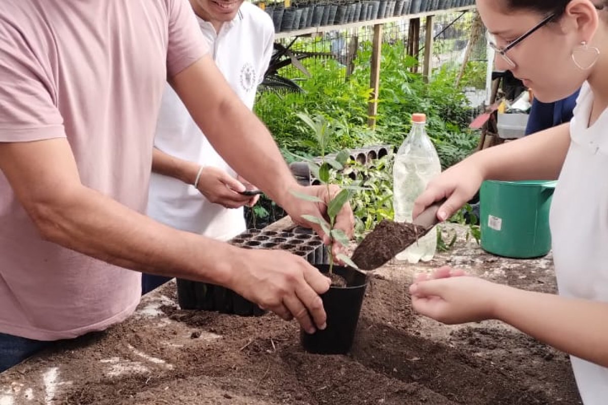 Estudiantes de la Escuela Nº 8 María América Barbosa conocieron el proceso productivo de árboles nativos y desarrollaron tareas específicas