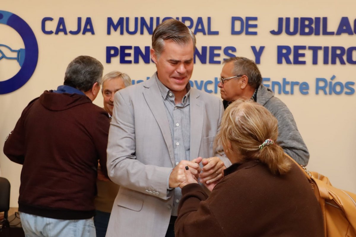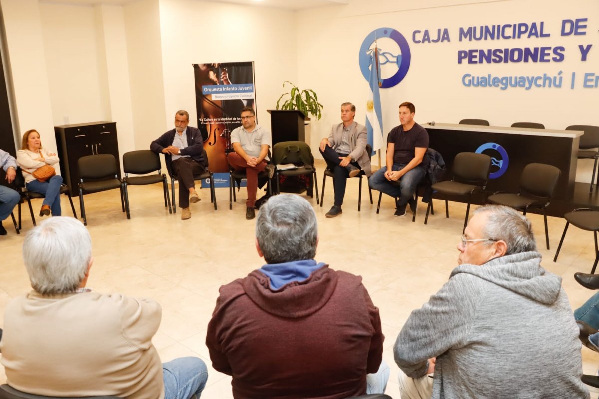 En el salón de la Caja Municipal de Jubilaciones, Pensiones y Retiro, el intendente Dr Esteban Martín Piaggio, junto con el secretario de Desarrollo Social, Ambiente y Salud, Martín Roberto Piaggio, el titular del área de Personas Adultas Mayores, Victor Hugo Lapido e integrantes del equipo de gobierno mantuvieron un encuentro con todos los centros de jubilados de nuestra ciudad, en el que hicieron entrega de una carpeta con las adhesiones al proyecto de Residencia Estatal para Personas Adultas Mayores, declarado de interés municipal por el Honorable Consejo Deliberante.