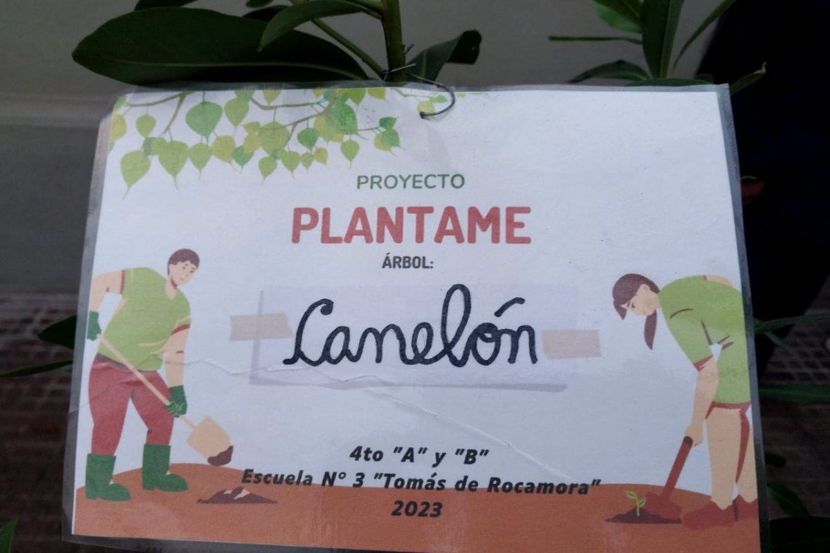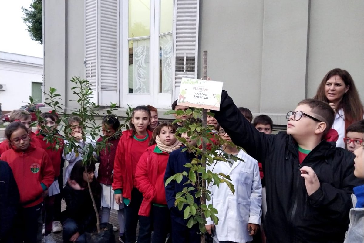 En esta oportunidad se plantó un canelón, que es una especie nativa y un lapacho amarillo que corresponde a otro ecoregión del país, pero que por su belleza y flores amarillas es muy solicitado.