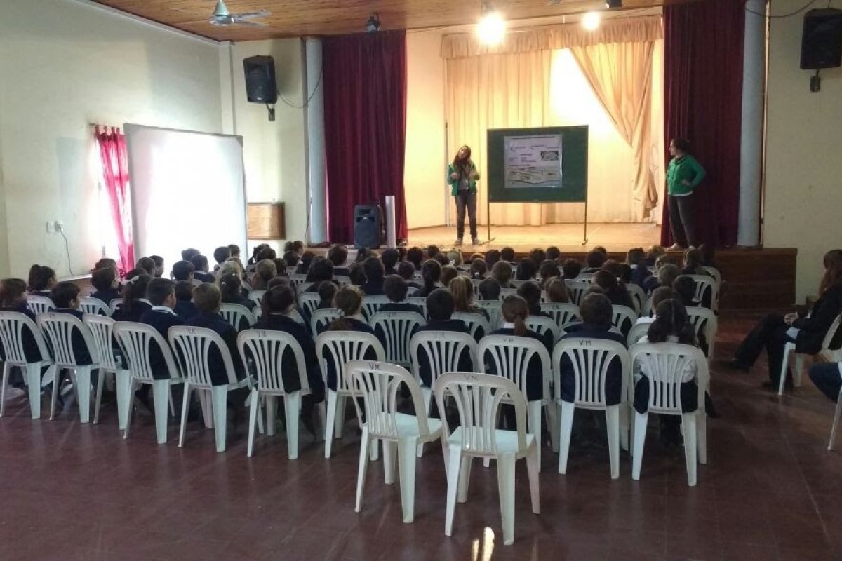 Para el nivel secundario se ofreció el “Programa de Voluntariado de Promotores Ambientales” así como charlas sobre la problemática social y ambiental asociada a las Pasteras del río Uruguay, con la participación de 46 estudiantes de 6to año A y B del Instituto Bértora. Se contó con la participación de la Asamblea Ciudadana Ambiental Gualeguaychú. También se ofreció una visita al Ecoparque Gualeguaychú junto con UADER, en tanto los Promotores diseñaron intervenciones públicas, con entrega de 400 bolsas de fiselina, un trabajo fotográfico sobre la mala disposición de residuos y la pintura de un mural como herramienta de concientización respecto al manejo de residuos, llamado “Separá, reciclá, aprendé” en los Galpones del Puerto”, explicó María de los Angeles Gómez.
