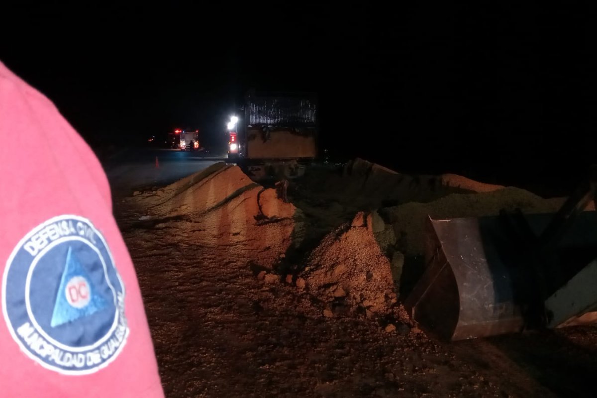 Durante su intervención, el personal de Defensa Civil municipal trabajó en la liberación de la calzada para posibilitar la reanudación del tránsito vehicular. Para ello se debió retirar todo el material con una máquina retroexcavadora y trasladarlo fuera de la autovía.