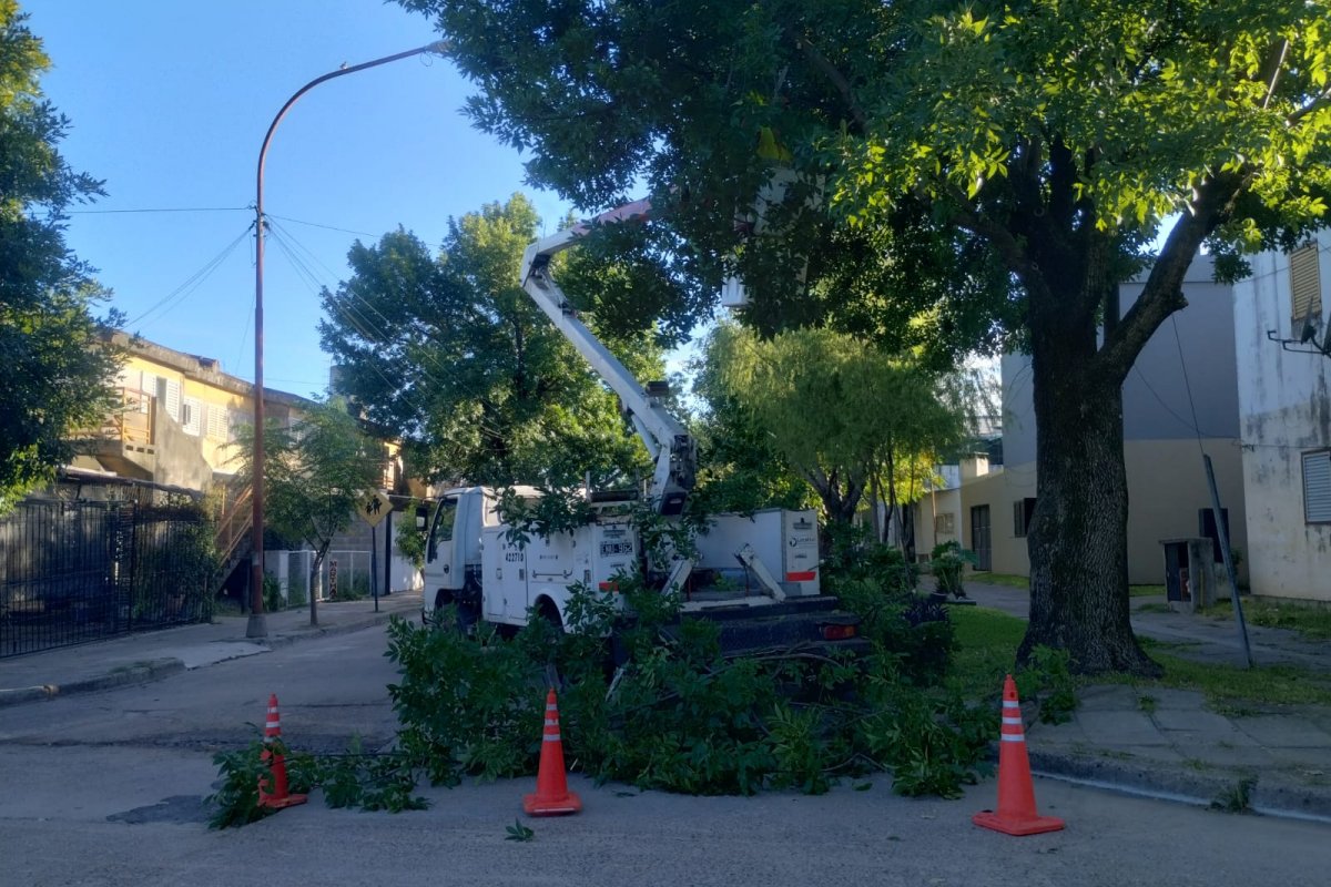 La Dirección de Espacios Verdes, dependiente de la Secretaría de Desarrollo y Infraestructura, lleva adelante tareas de poda y mantenimiento en las calles Bomberos Voluntarios y 3 de Caballería