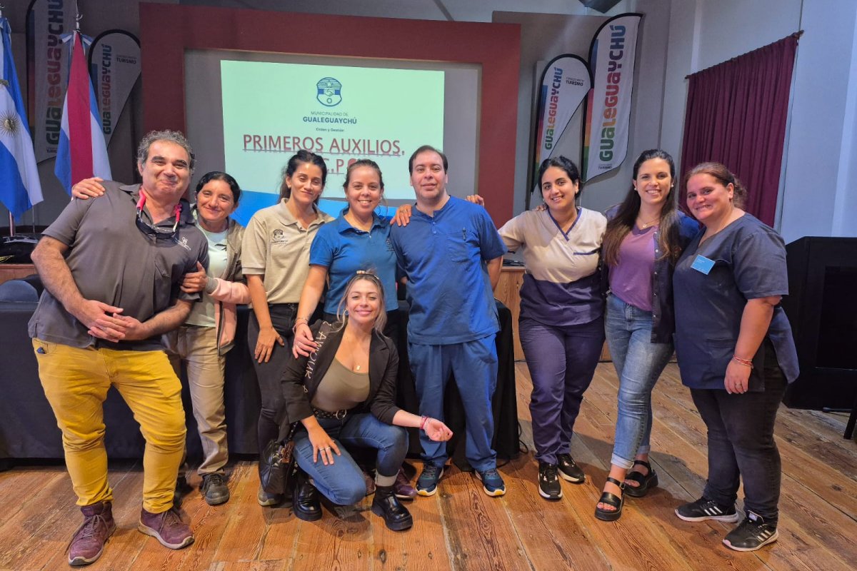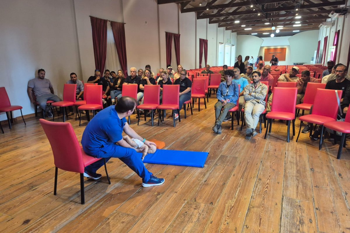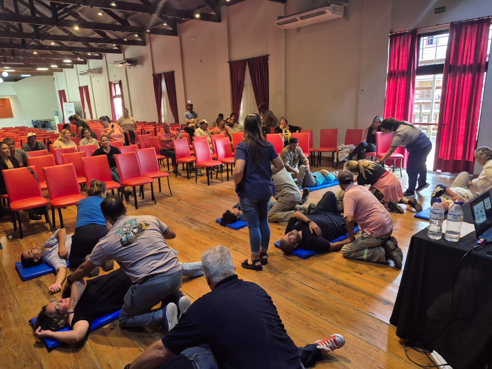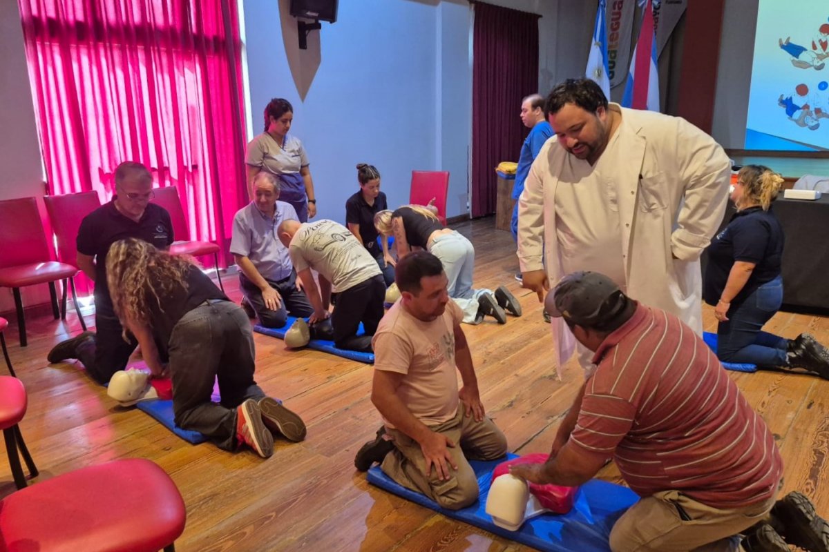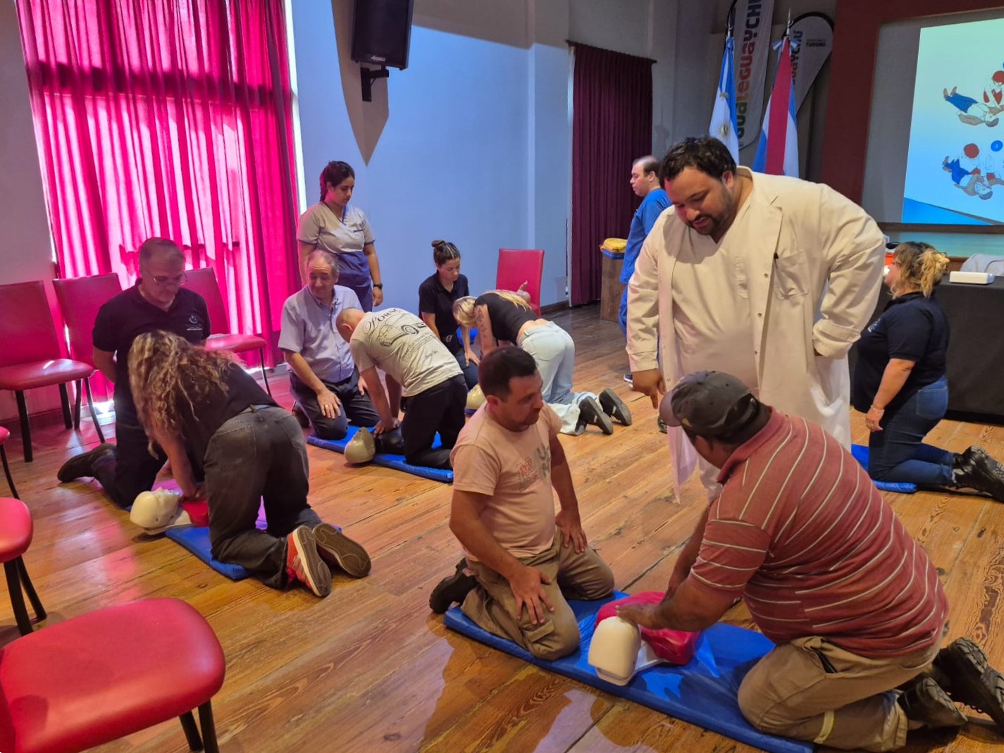 La capacitación se dividió en dos módulos fundamentales. El primero, enfocado en primeros auxilios, fue impartido por los licenciados Luciano Gómez y Macarena Bello, con la participación del subsecretario de Salud, Pablo Alfaro.