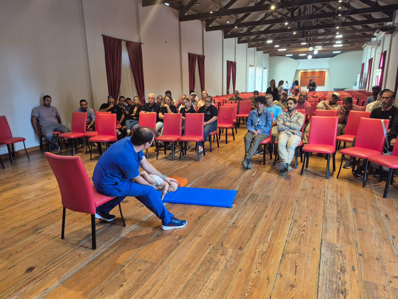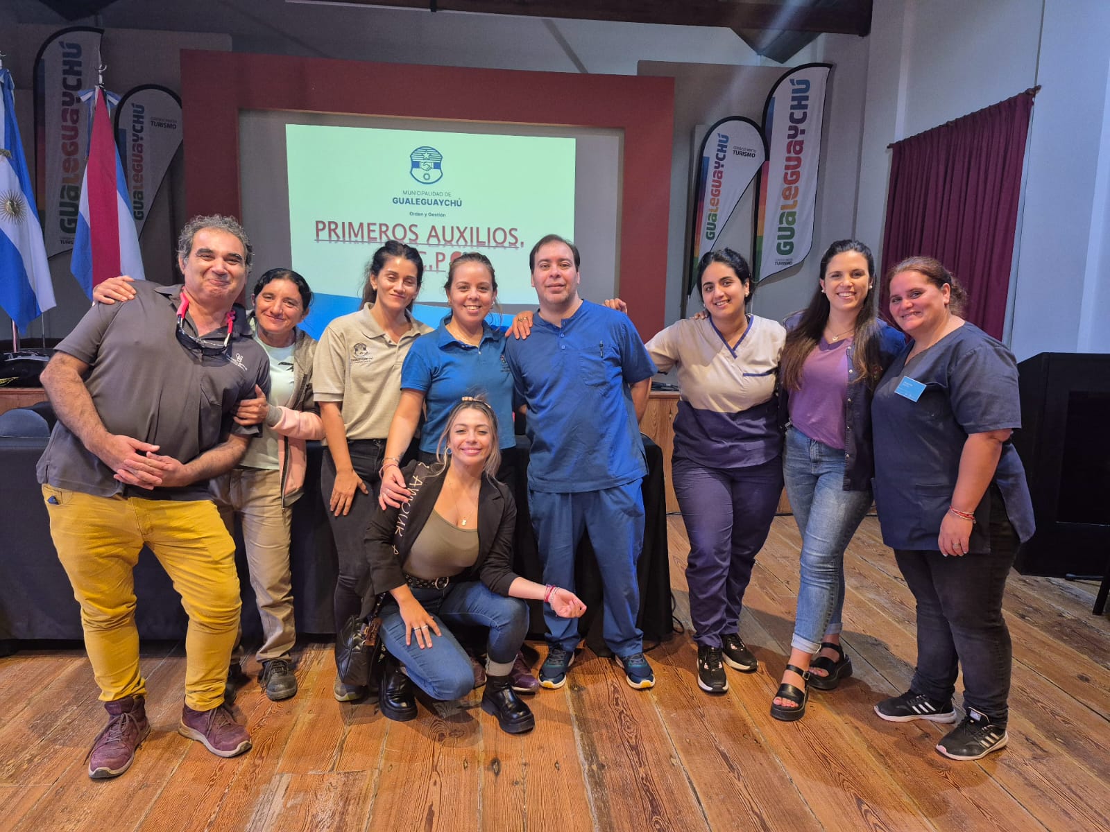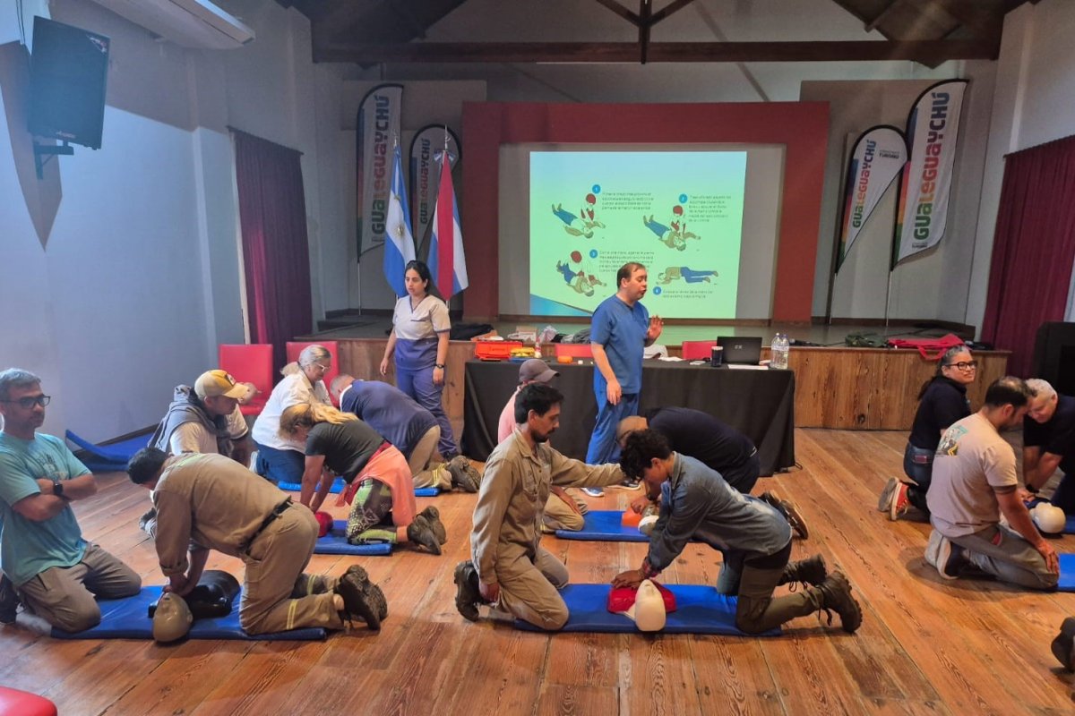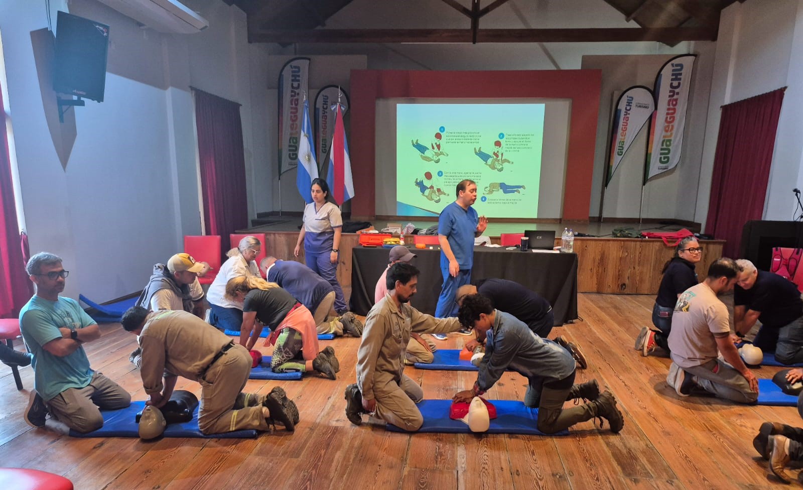 La capacitación se dividió en dos módulos fundamentales. El primero, enfocado en primeros auxilios, fue impartido por los licenciados Luciano Gómez y Macarena Bello, con la participación del subsecretario de Salud, Pablo Alfaro.