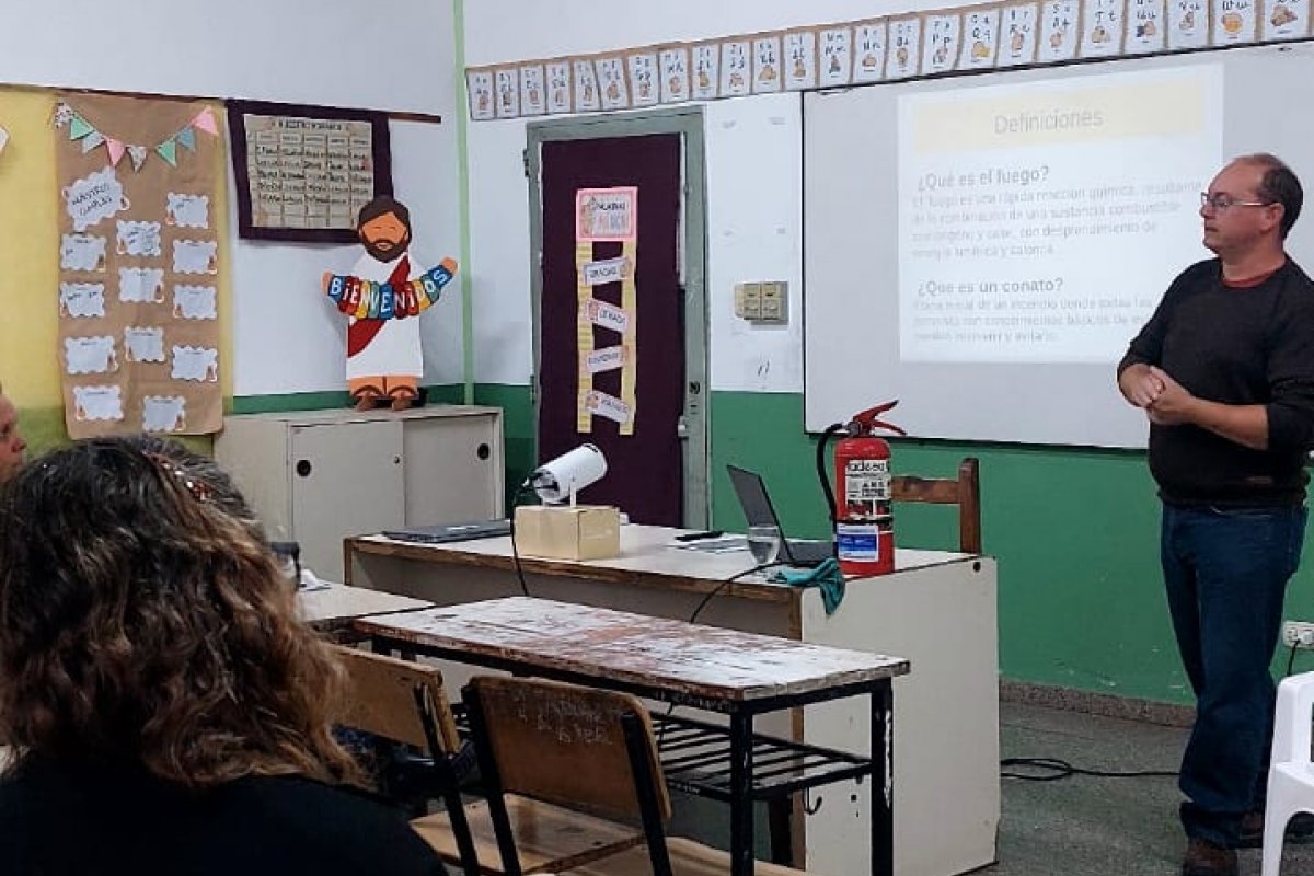 Este lunes, 7 de abril, el equipo de Defensa Civil brindó una capacitación a 25 docentes de Instituto Sagrado Corazón, sobre temáticas vinculadas a la prevención de incendios, plan de evacuaciones y simulacros.