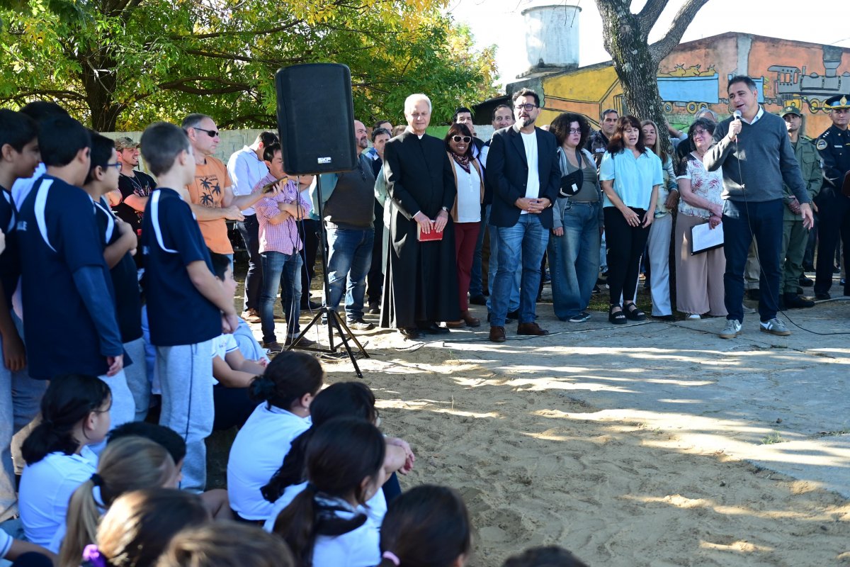 Este martes por la tarde, el presidente municipal Mauricio Davico participó de un emotivo acto en la Plaza Cacique, ubicada en Schachtel y Los Chanaes, donde se celebró la puesta en valor del espacio público con la comunidad de los barrios Cacique, San Isidro y Alsina.
