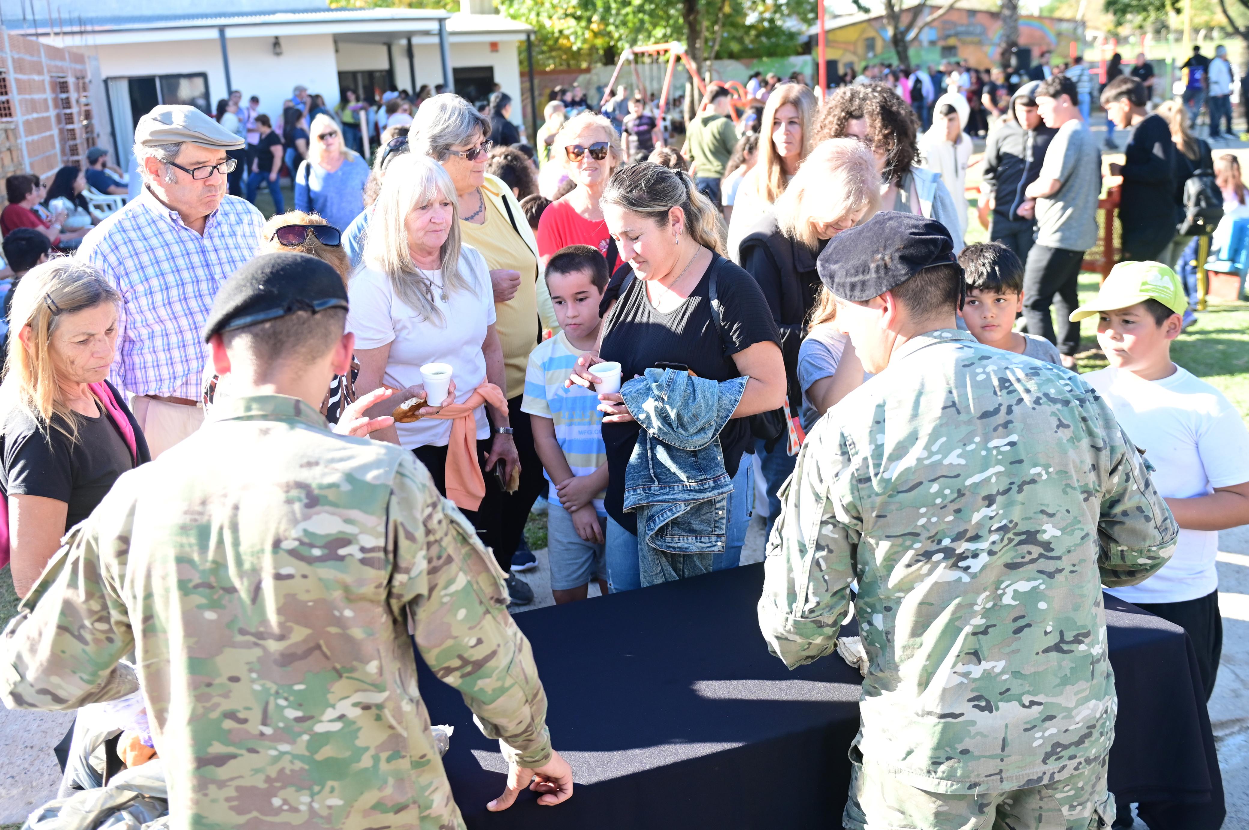 Al cierre de la actividad, el Escuadrón de Exploración de Caballería Blindado 2 'Dragones Coronel Zelaya'" compartió mate cocido y tortas fritas con los vecinos y autoridades presentes, en un gesto que reforzó el espíritu de encuentro y pertenencia del barrio.