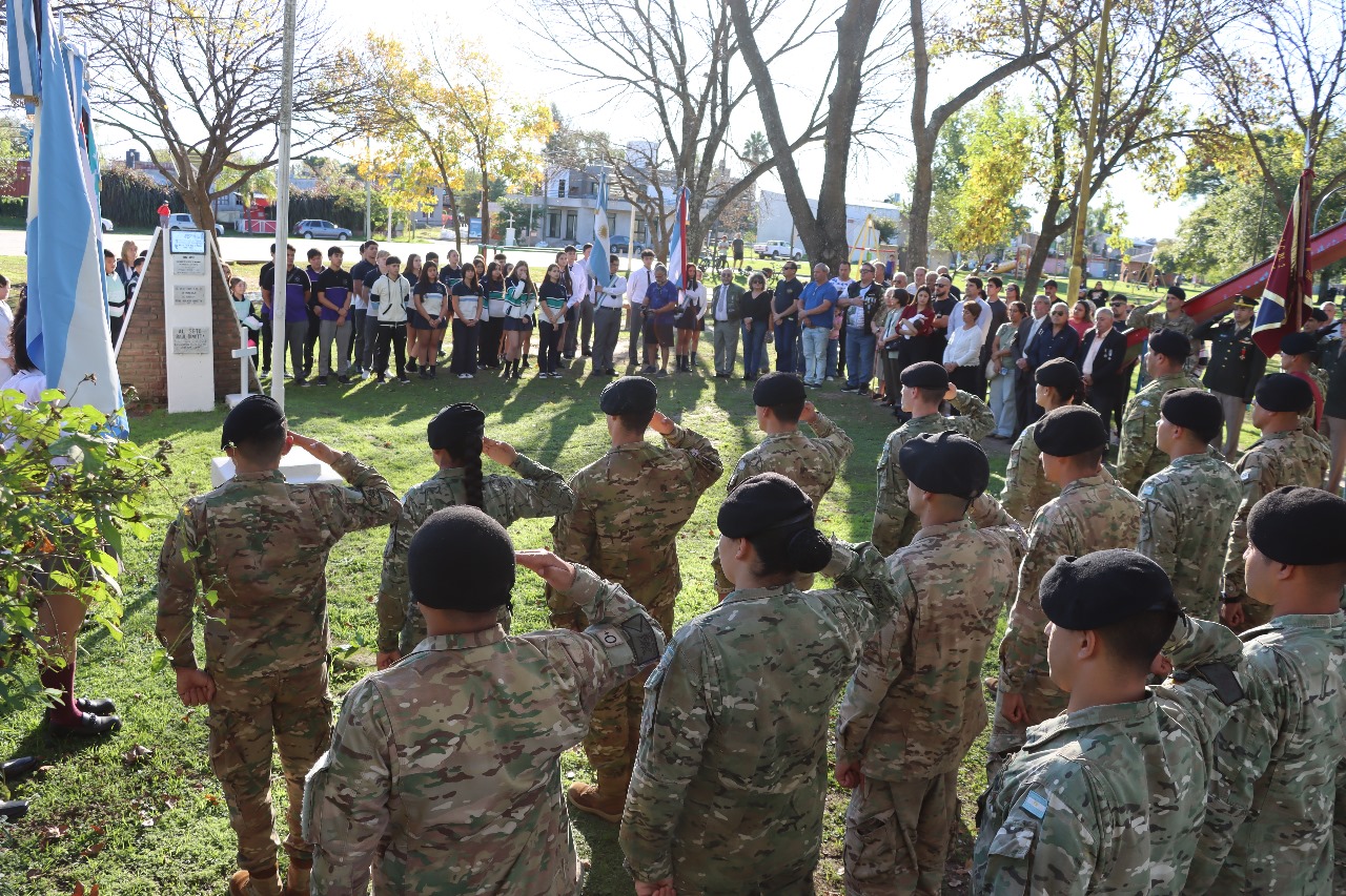 La comunidad se reunió para rendir homenaje al sargento que dio su vida durante la Guerra de Malvinas. El acto, cargado de emoción, memoria y gratitud, contó con la presencia de autoridades municipales, representantes del Ejército Argentino - incluidas autoridades de la Aviación de Ejército -, instituciones educativas con sus abanderados y escoltas, y numerosos Veteranos de Guerra de Malvinas (VGM).