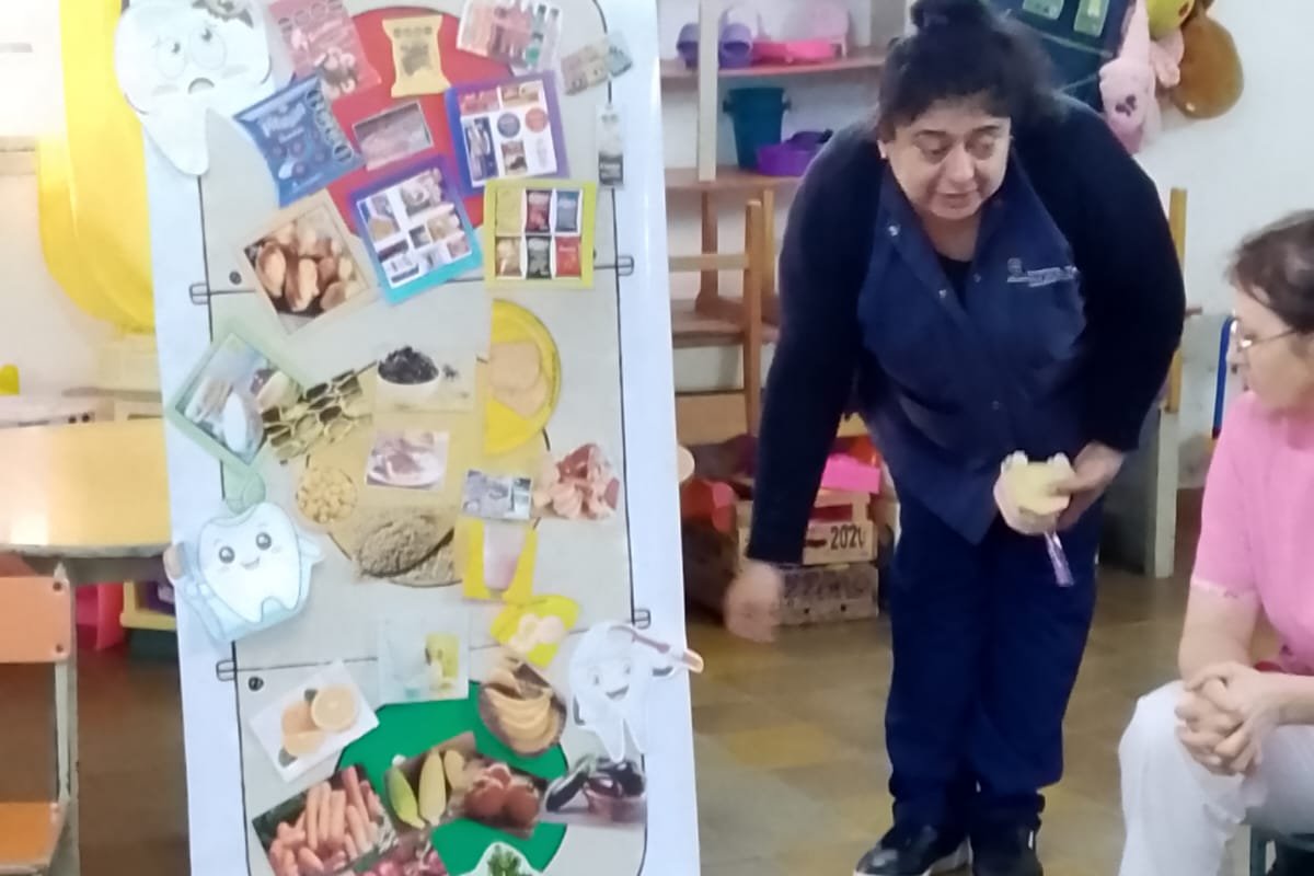 Durante la jornada, los profesionales compartieron contenidos adaptados a la edad de los pequeños, utilizando recursos didácticos y juegos que facilitaron la comprensión de temas como el cepillado correcto, el rol de los alimentos en la salud bucodental y la prevención de enfermedades comunes en la infancia.