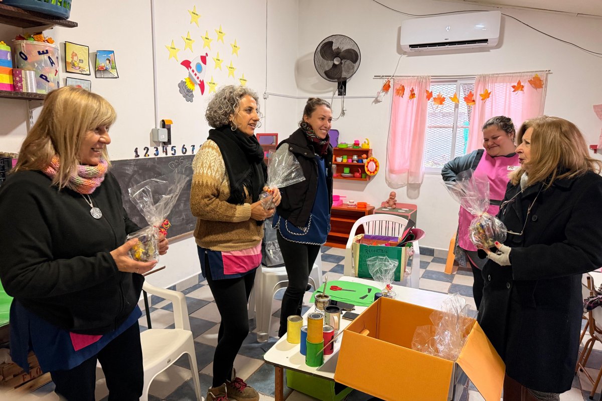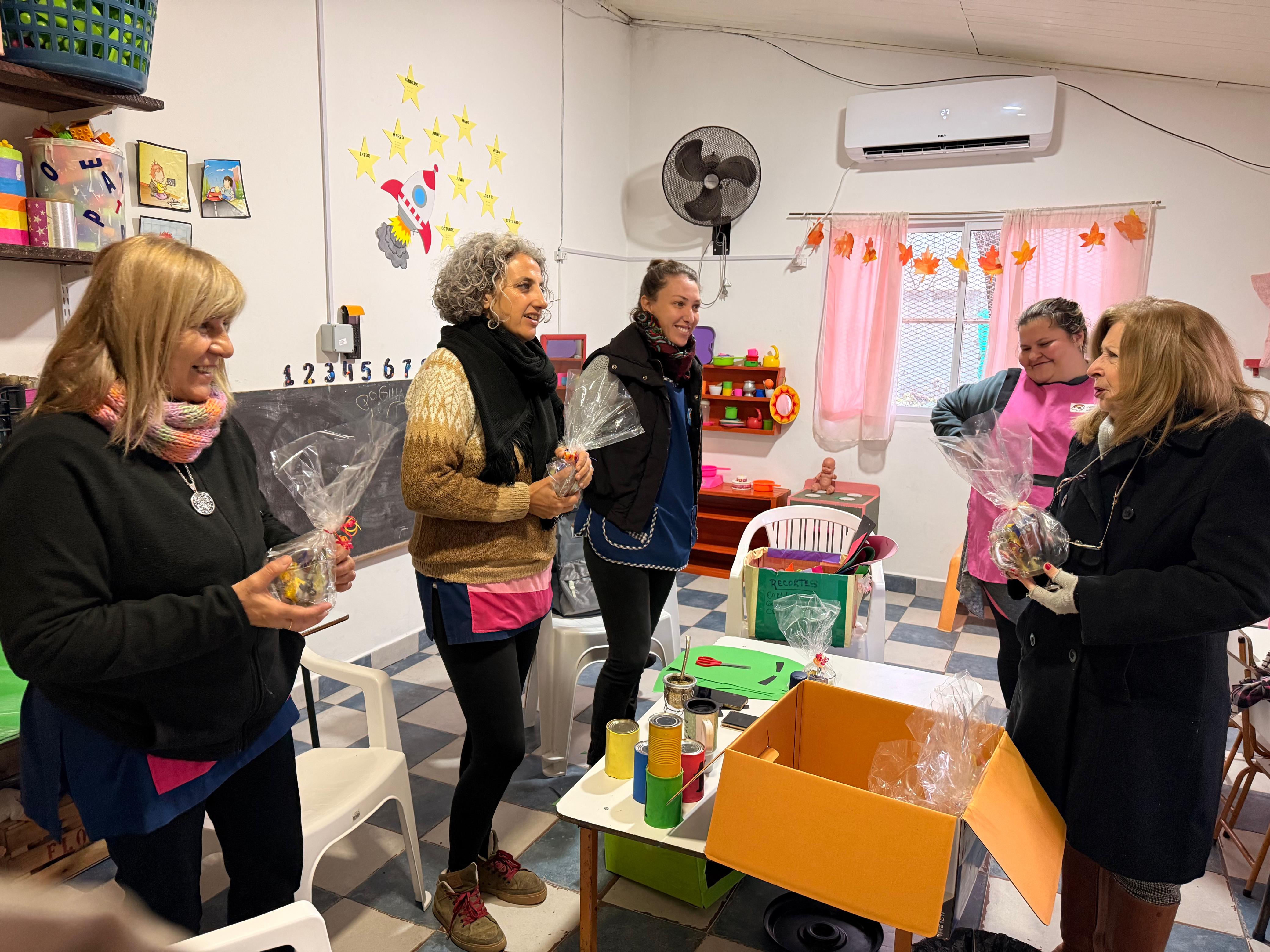 A su vez, Jesica Del Valle, coordinadora de los EMPI, junto a Andrea Peña, referente administrativa, y Vanina Scavuzzo, nutricionista, recorrieron otros espacios municipales para hacer llegar los mismos gestos de gratitud a todo el equipo que día a día sostiene el funcionamiento de los jardines.