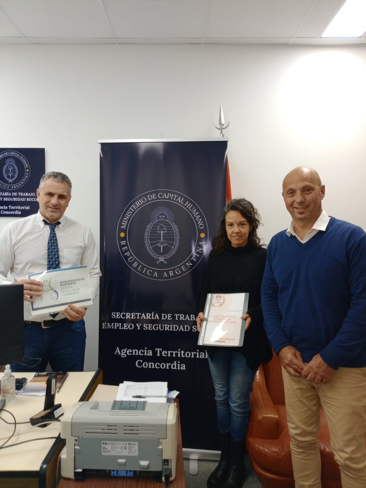 Participaron del mismo, Eduardo D. Vidoni, jefe de la Agencia Territorial Concordia; Irina Asrilevich, referente de Políticas de Empleo y Formación Profesional; Fernando Gerard, referente de Articulación Territorial; y Gustavo Constanzo, responsable del Centro de Desarrollo del Conocimiento de Gualeguaychú.