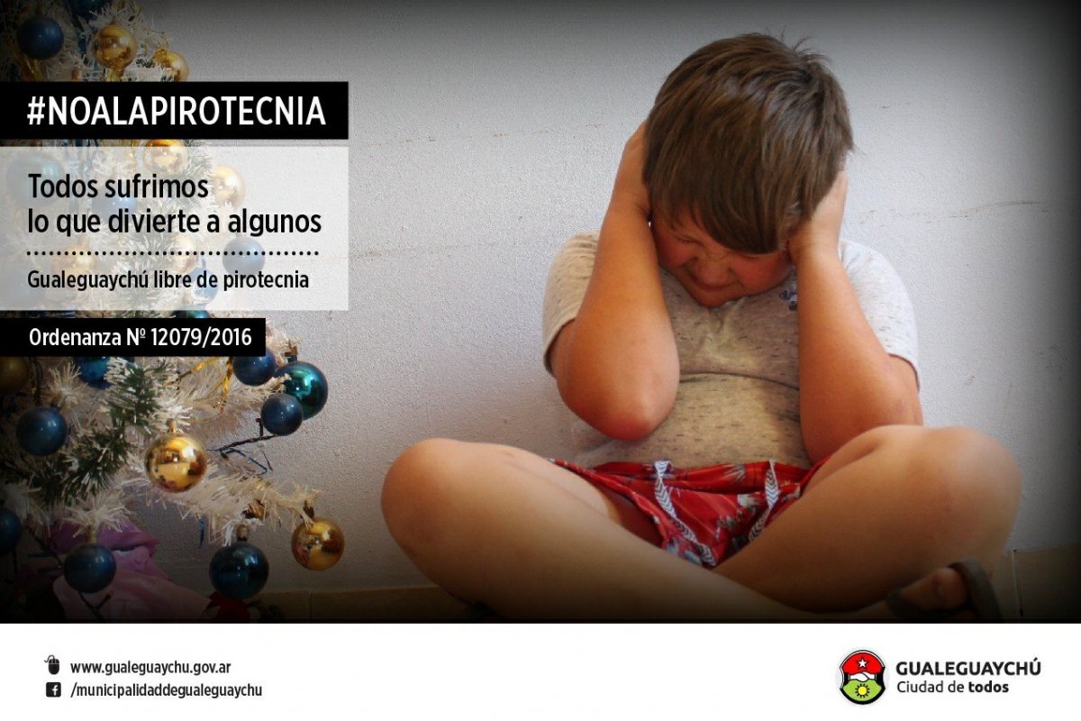 Tal como detalla la ordenanza aprobada en diciembre de 2016 por el Honorable Concejo Deliberante, a partir del 1 de marzo se encuentra prohibido "el uso, fabricación, depósito y comercialización, tanto en carácter minorista como mayorista, de artificios pirotécnicos en todo el ejido de la Municipalidad de San José de Gualeguaychú, exceptuándose aquellos que sean clasificados como de “venta libre” por el Registro Nacional de Armas (R.E.N.A.R.)”