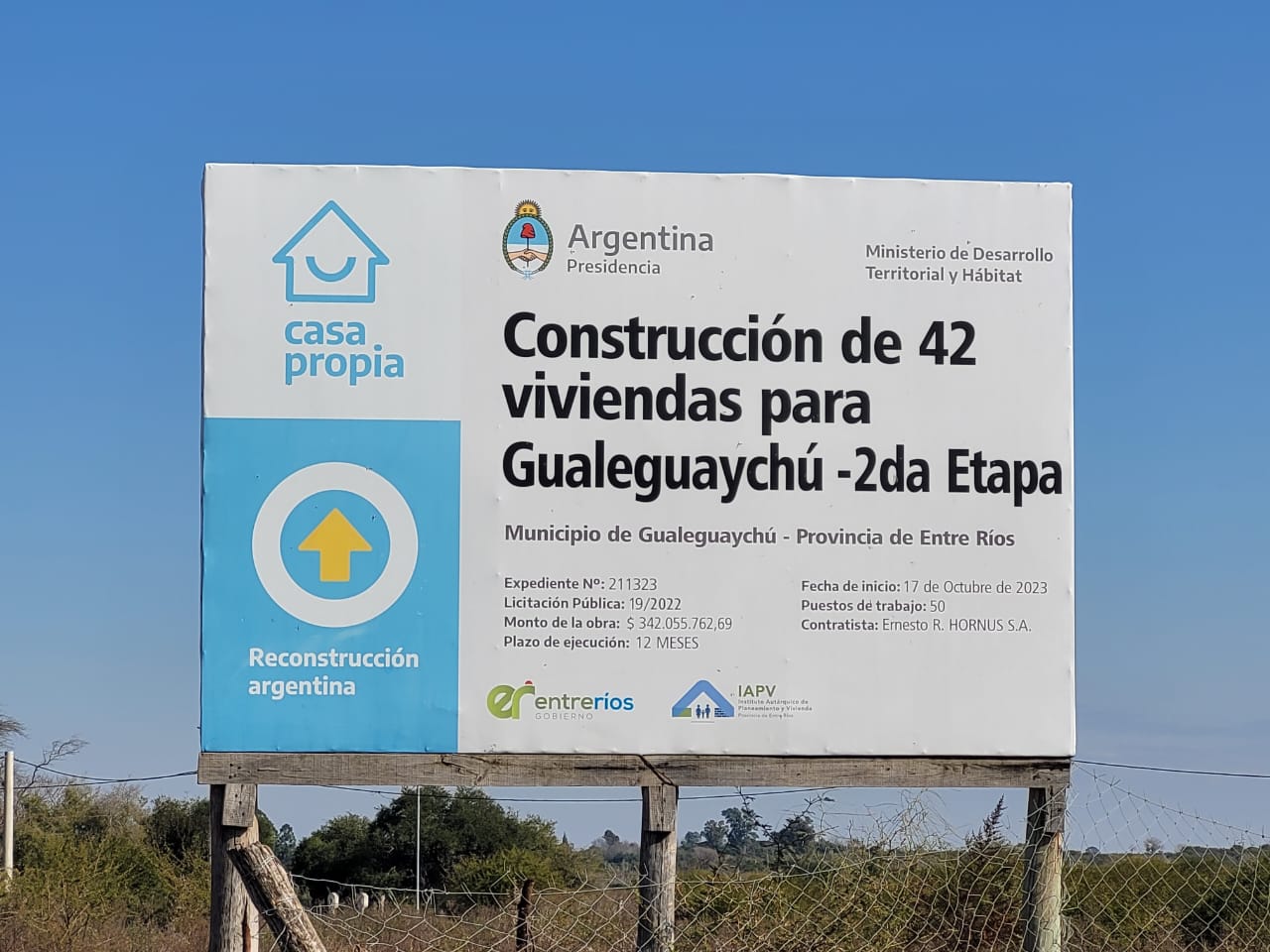 El Gobierno de Entre Ríos invertirá más de $3.000 millones en la construcción de viviendas en la zona noroeste de Gualeguaychú. Las obras tendrán un plazo de ejecución de 16 meses.