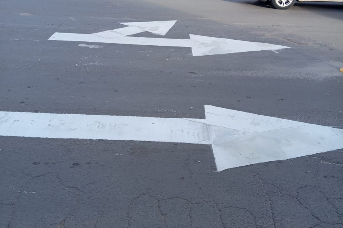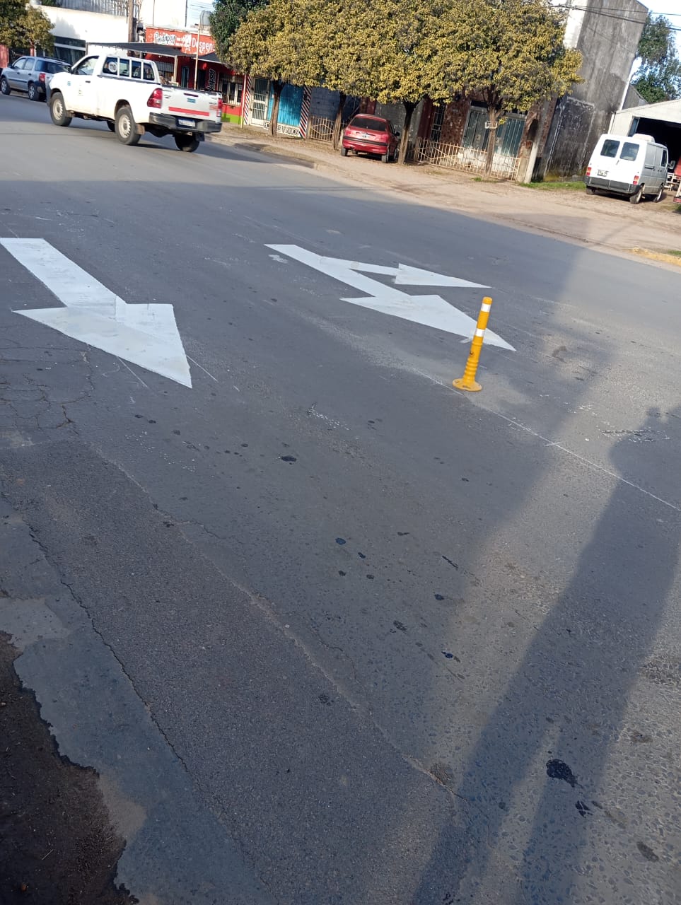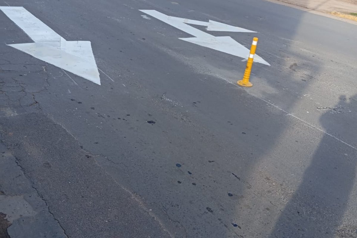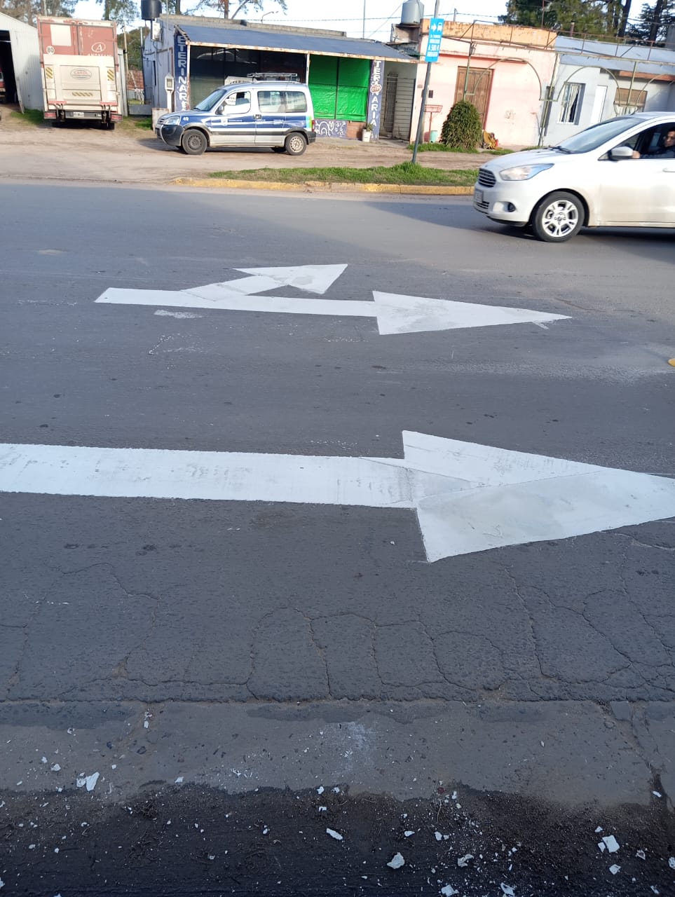 La tarea consistió en la pintura de señalización horizontal, incorporando flechas direccionales sobre la calzada, que indican las opciones de giro y circulación permitidas para los vehículos que transitan por la zona.