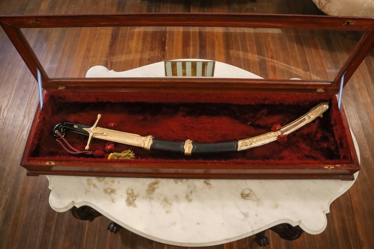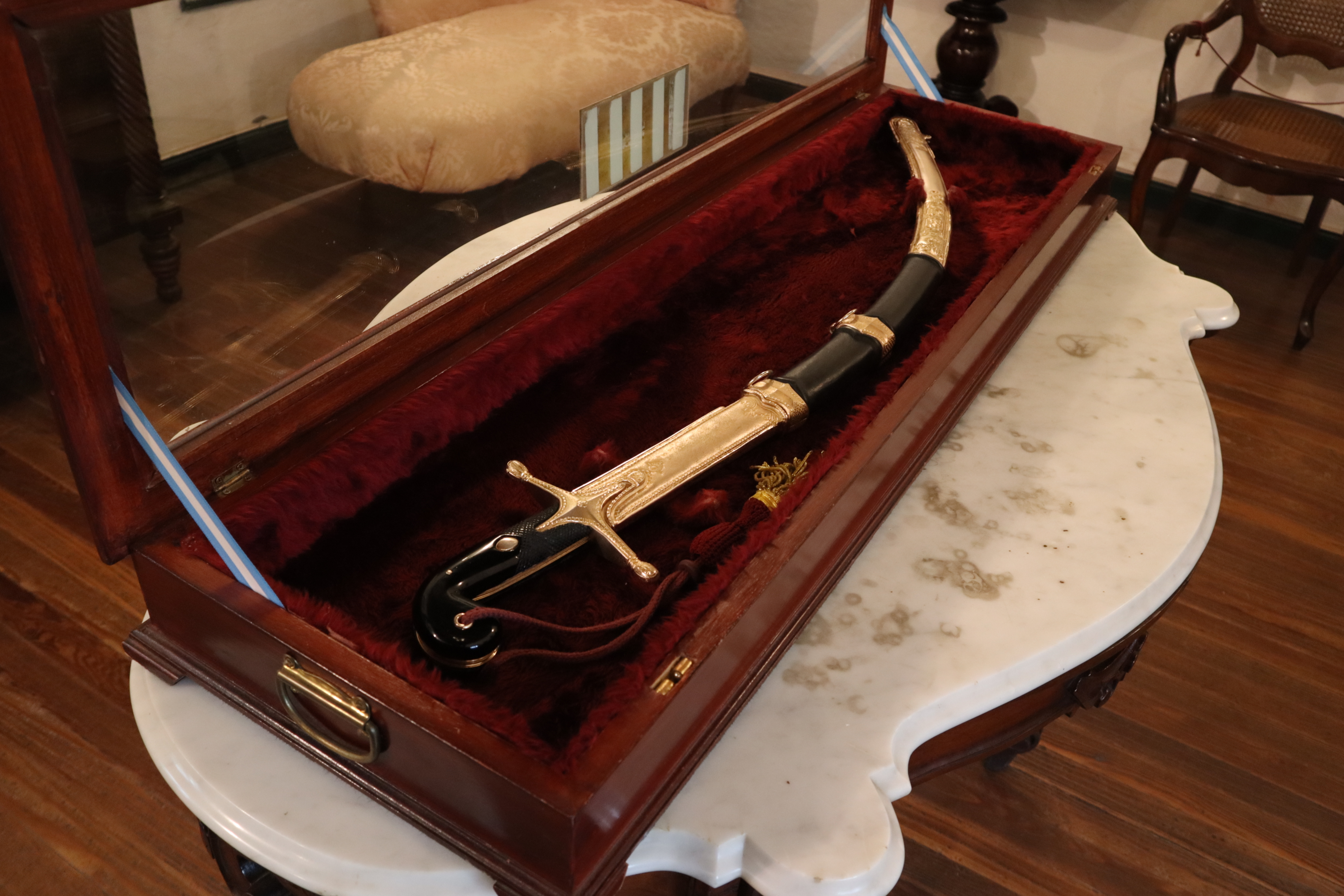 Una réplica del sable corvo de San Martín, en el Museo Casa de Haedo