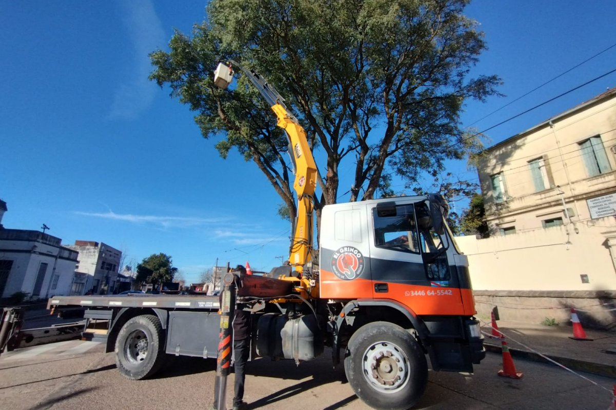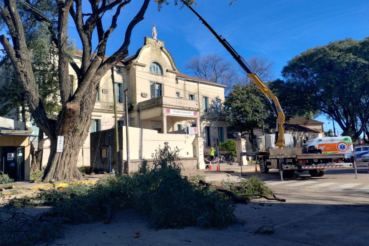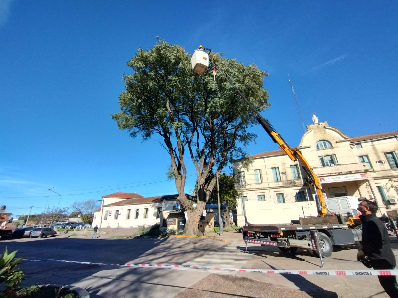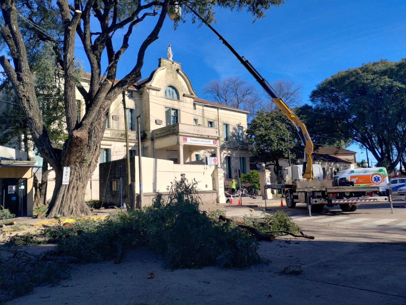 La Municipalidad de Gualeguaychú, a través de la Dirección de Espacios Verdes dependiente de la Secretaría de Desarrollo Territorial e Infraestructura, llevó adelante trabajos de poda de seguridad frente al Hospital Centenario.