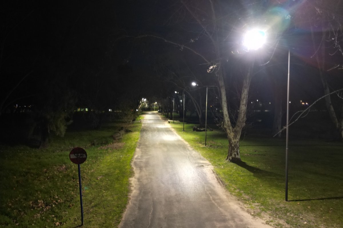 Instalaron nuevas luminarias en el Parque Unzué para brindar más seguridad durante la noche