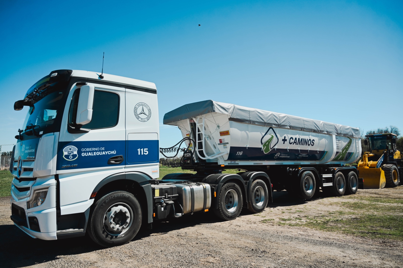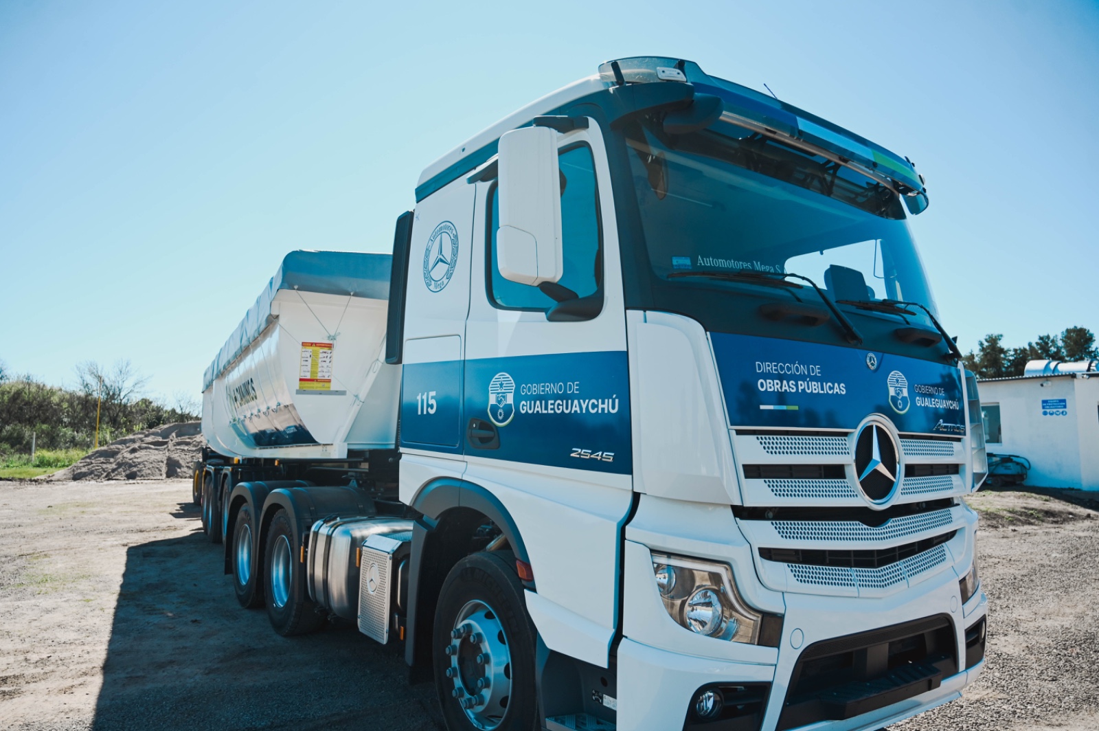 El Municipio incorporó un camión 0 km Mercedes-Benz, modelo Actros 2545 LS 33 6x2, con semirremolque de vuelco marca Hermann, el cual será utilizado de manera exclusiva en la Planta de Asfalto del Parque Industrial, que muy pronto será inaugurada, luego de haber sido trasladada desde Palavecino, una zona inundable que impedía su funcionamiento continuo.