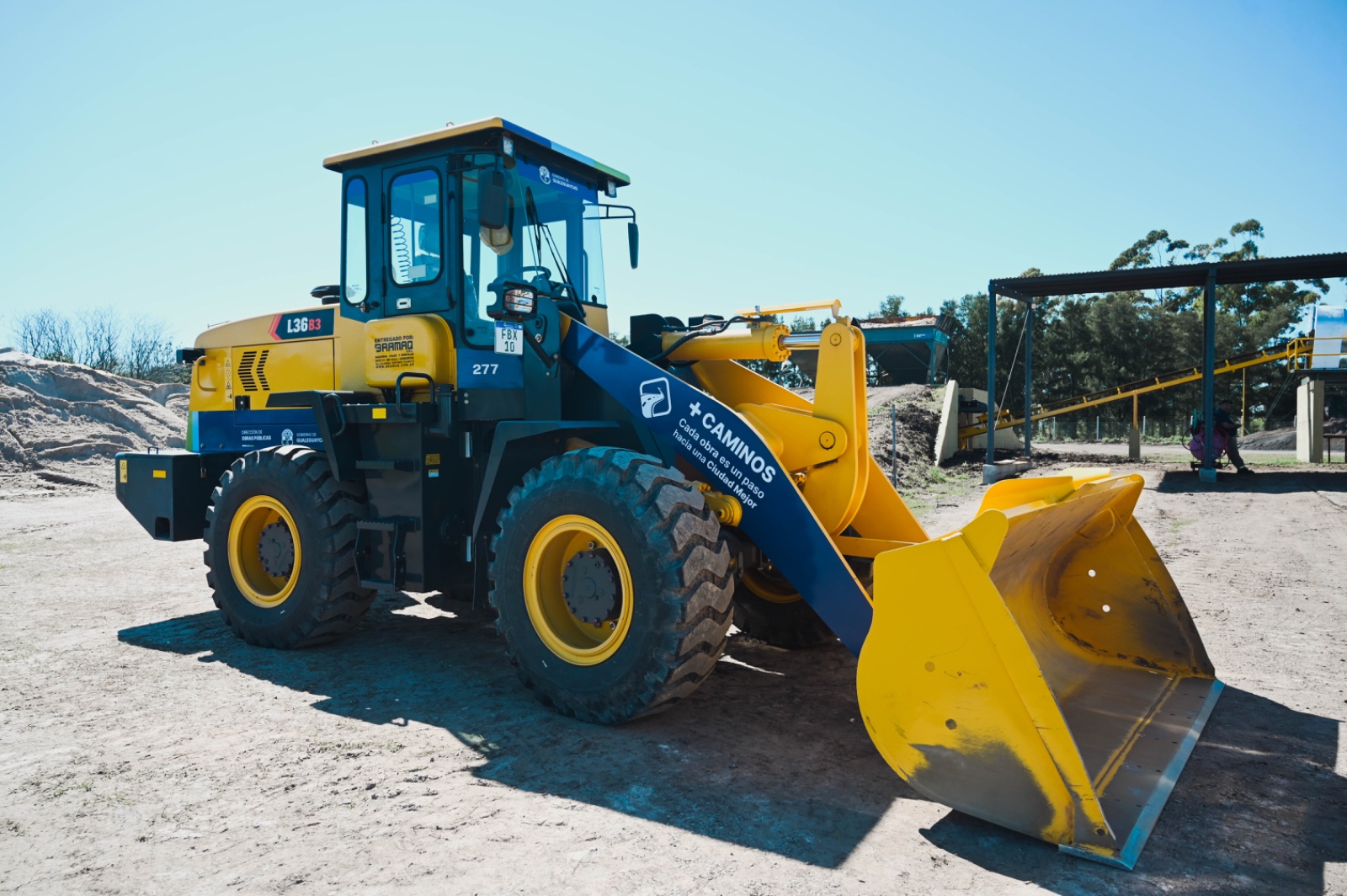 El Gobierno de Gualeguaychú sumó una Pala Cargadora Frontal 0 km para fortalecer el trabajo de la Planta de Asfalto Municipal, que fue relocalizada en el Parque Industrial y muy pronto comenzará a estar en funcionamiento.